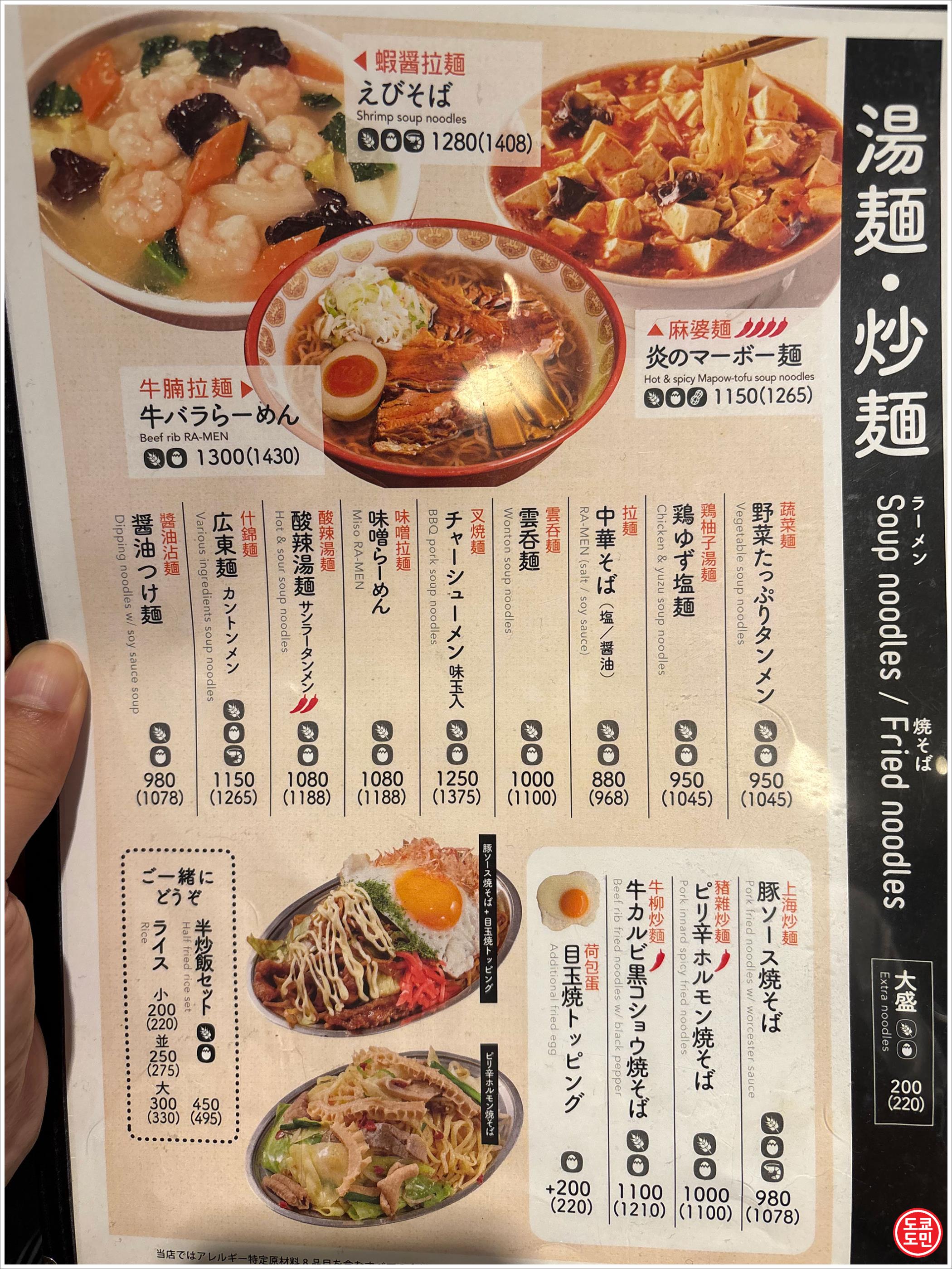 교쟈(만두), 볶음밥, 라멘 등 다양한 음식들이 그나마 저렴하게 제공되는 음식점인데,