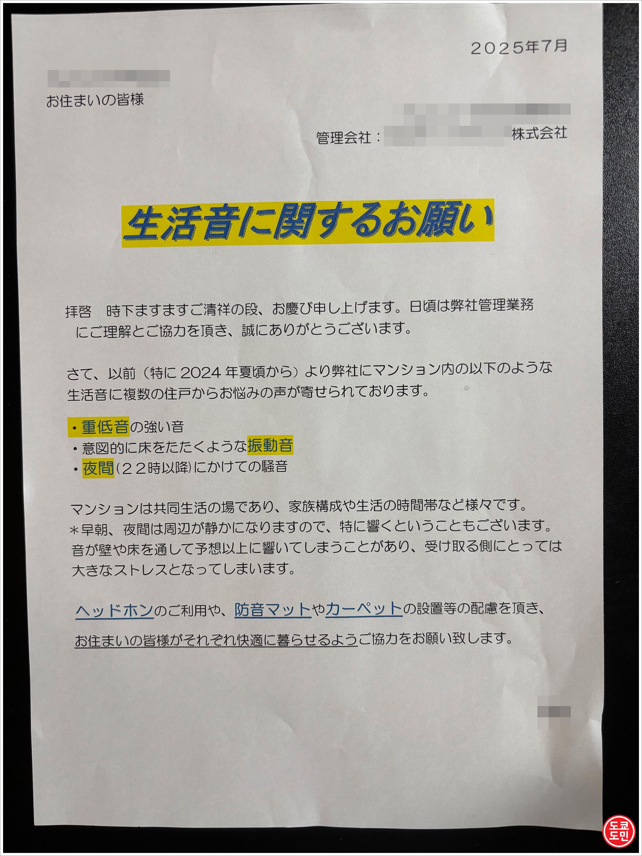 우리나라도 신축 맨션이어도 층간소음은 나겠지만, 그래도 일본은 좀 더 심한 편이라 생각된다.