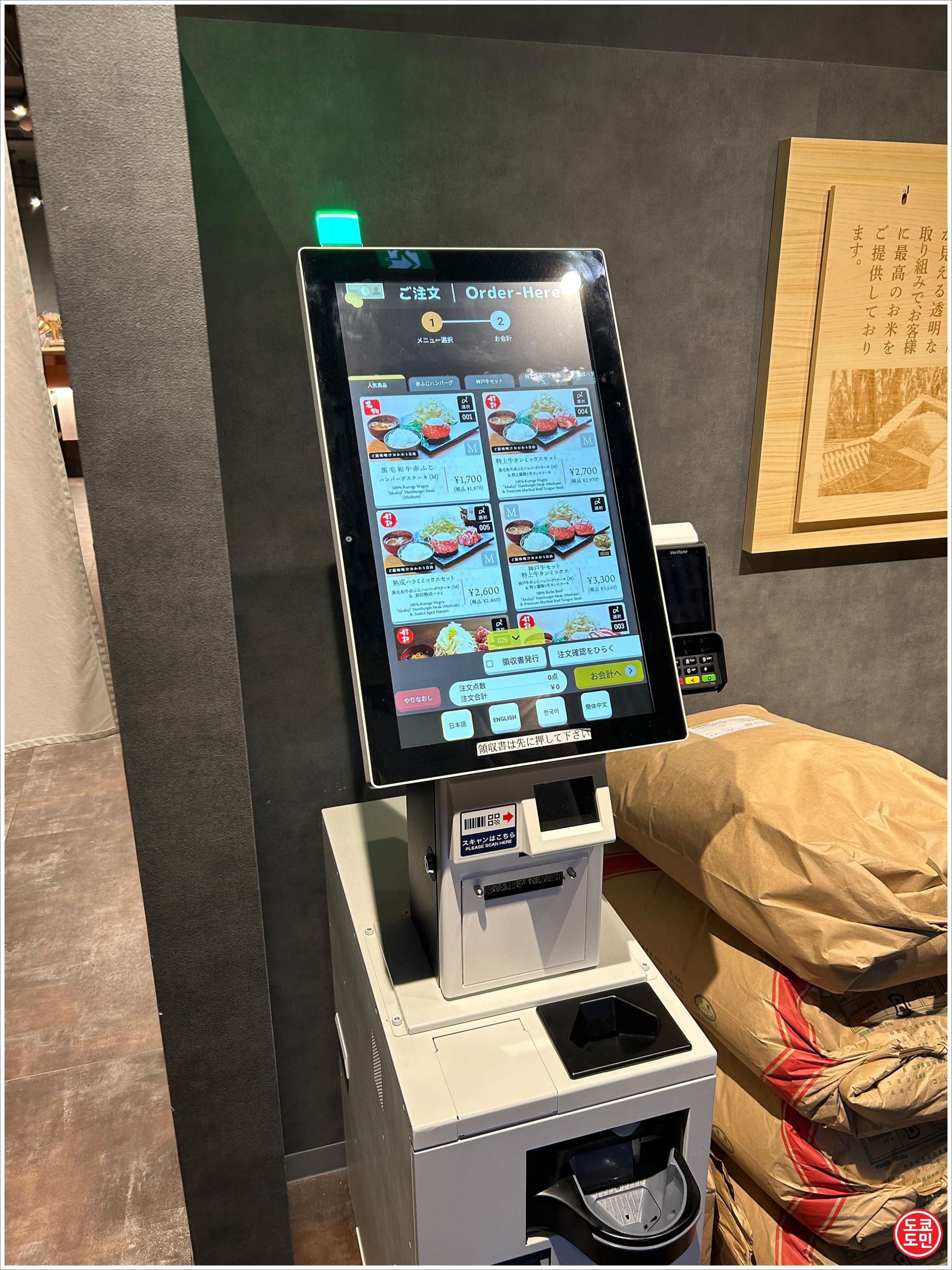가게 안으로 들어가면 키오스크가 있는데, 선주문 선결제입니다.