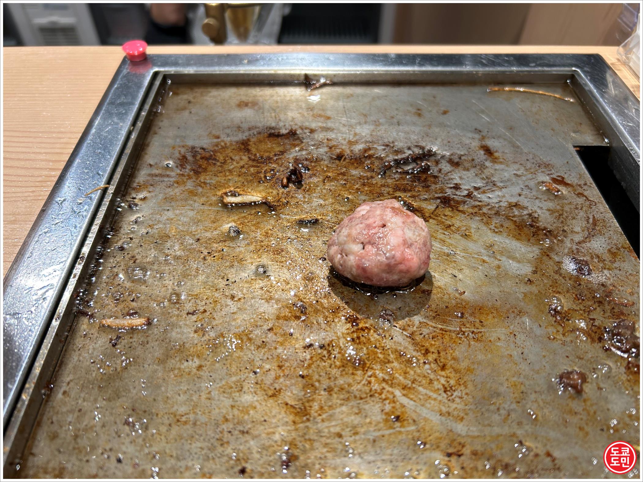 히츠마부시용으로 나온 조그만한 함박스테이크를 구워줍니다.