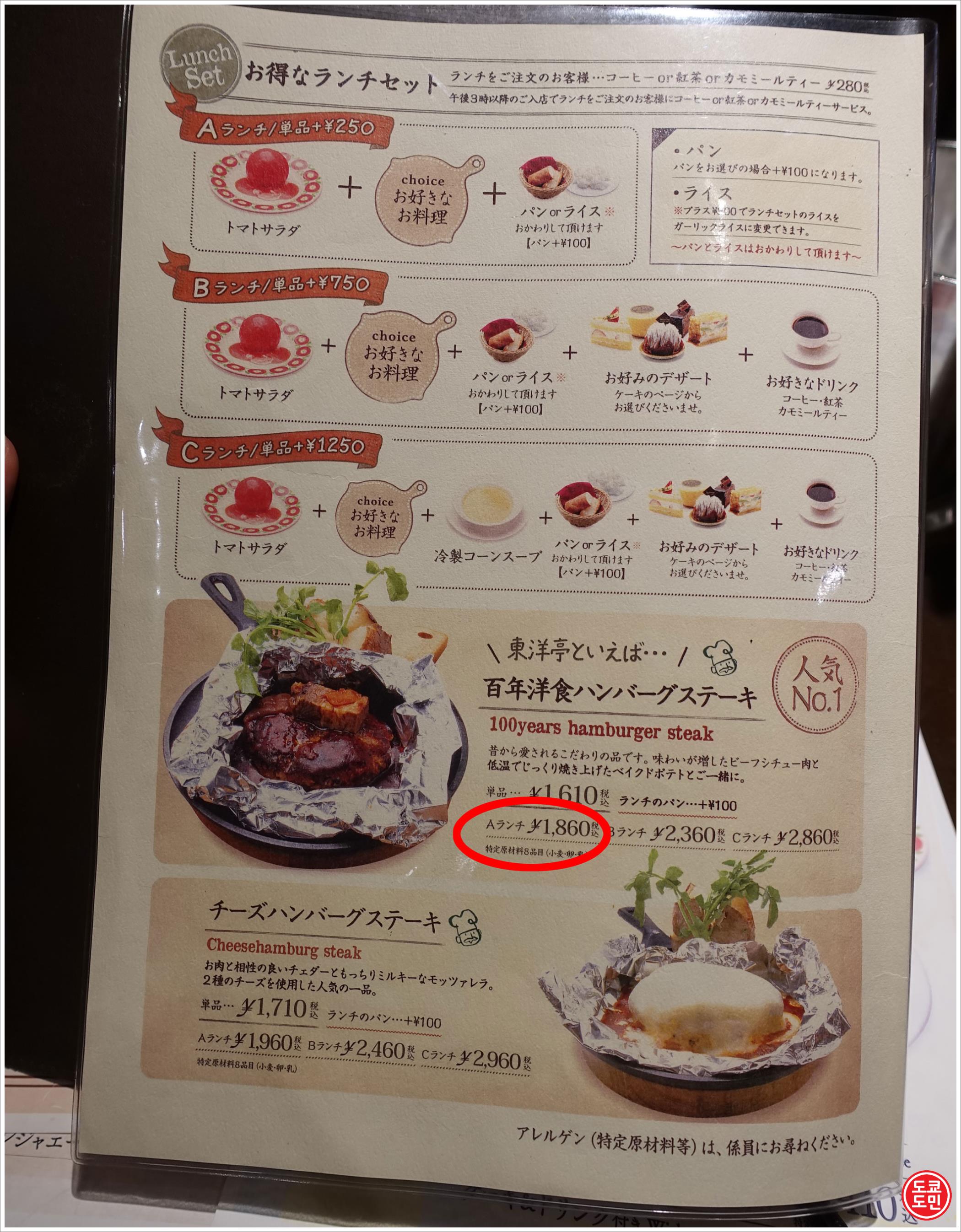 오사카 맛집!! 함박스테이크 맛집으로 유명한곳이 "동양정(토우요우테이,東洋亭)".