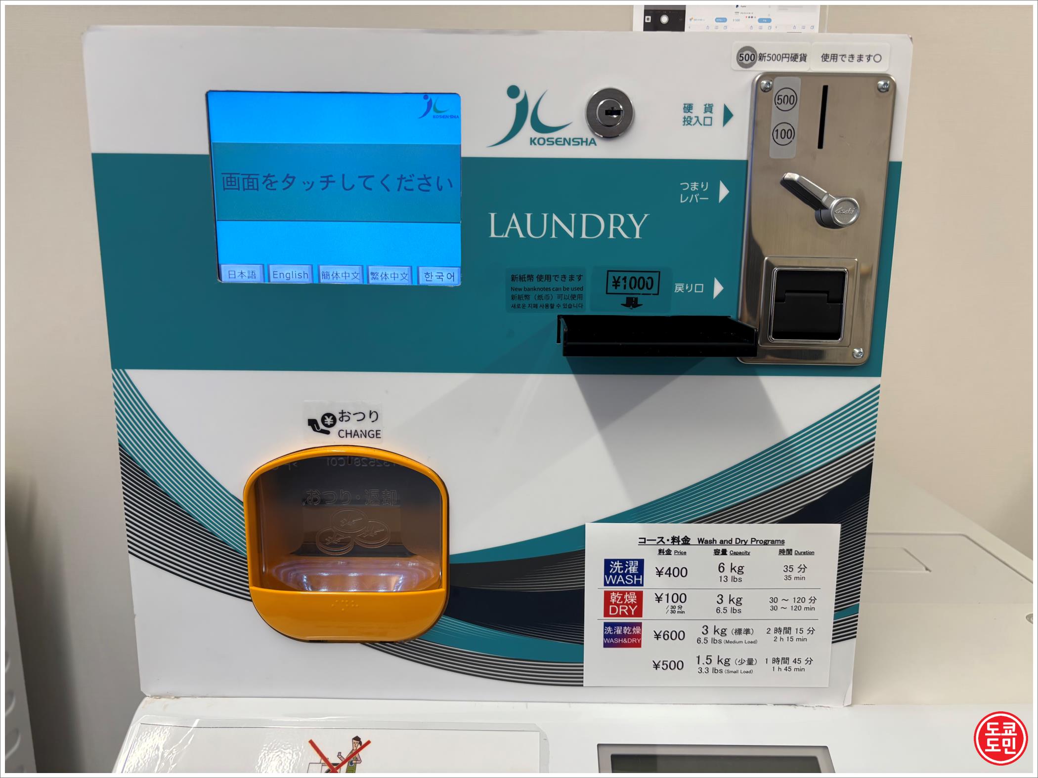 저는 이번에 세탁, 건조 3kg 코스인 600엔(약 6천원)짜리로 이용했습니다.