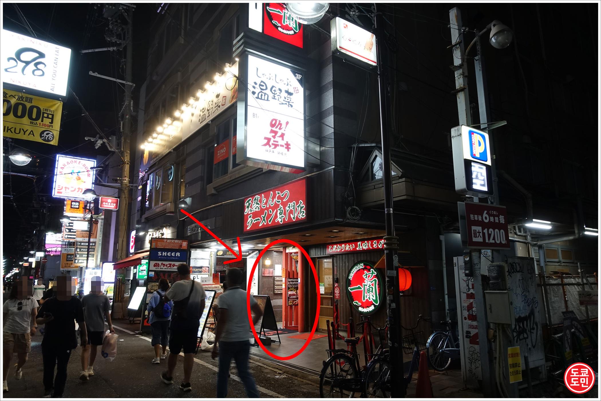 이치란 가게 옆에 지하로 내려가는 계단이 있습니다.
