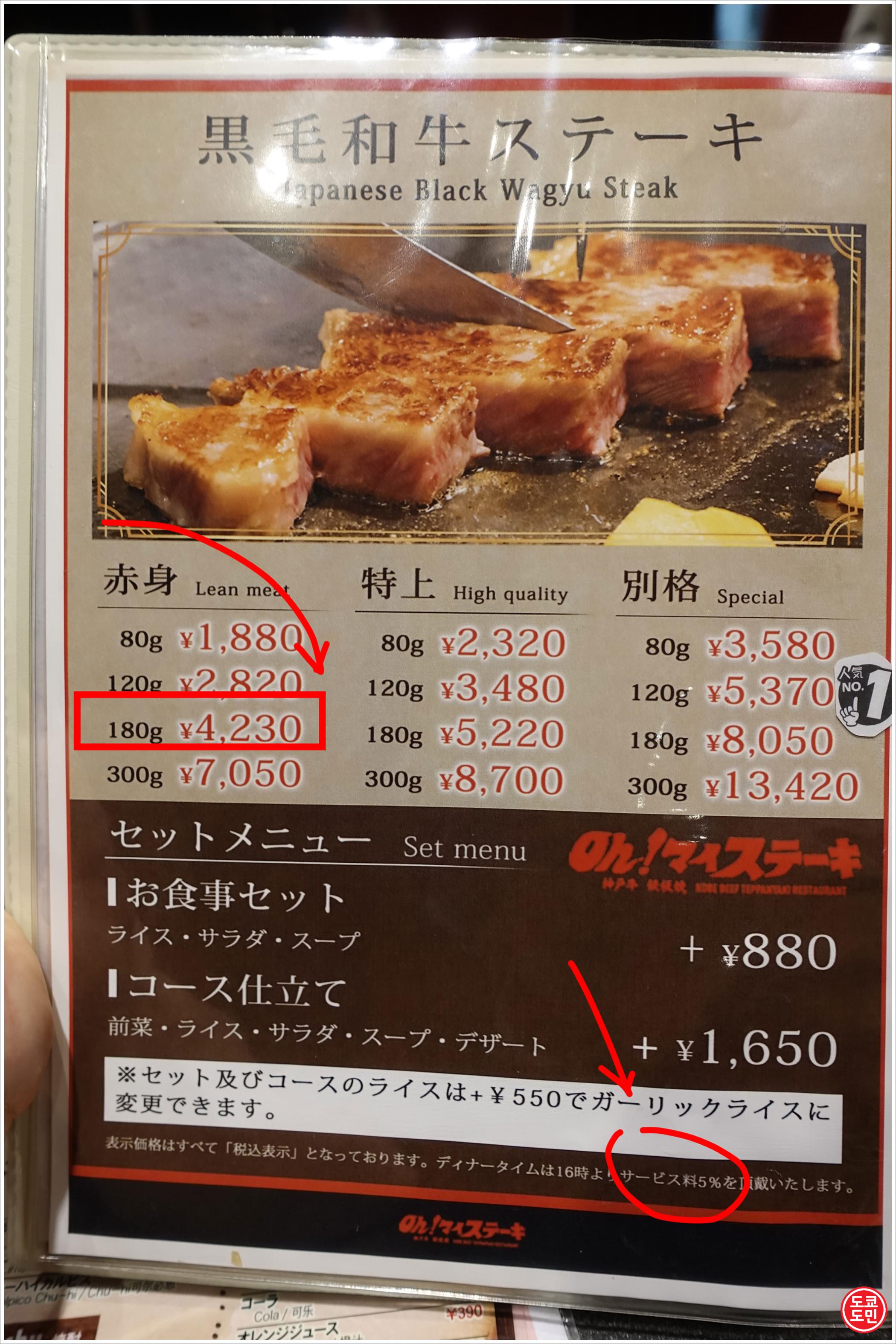 저는 와규 아까미(黒毛和牛 赤身)의 180g으로 주문했습니다.