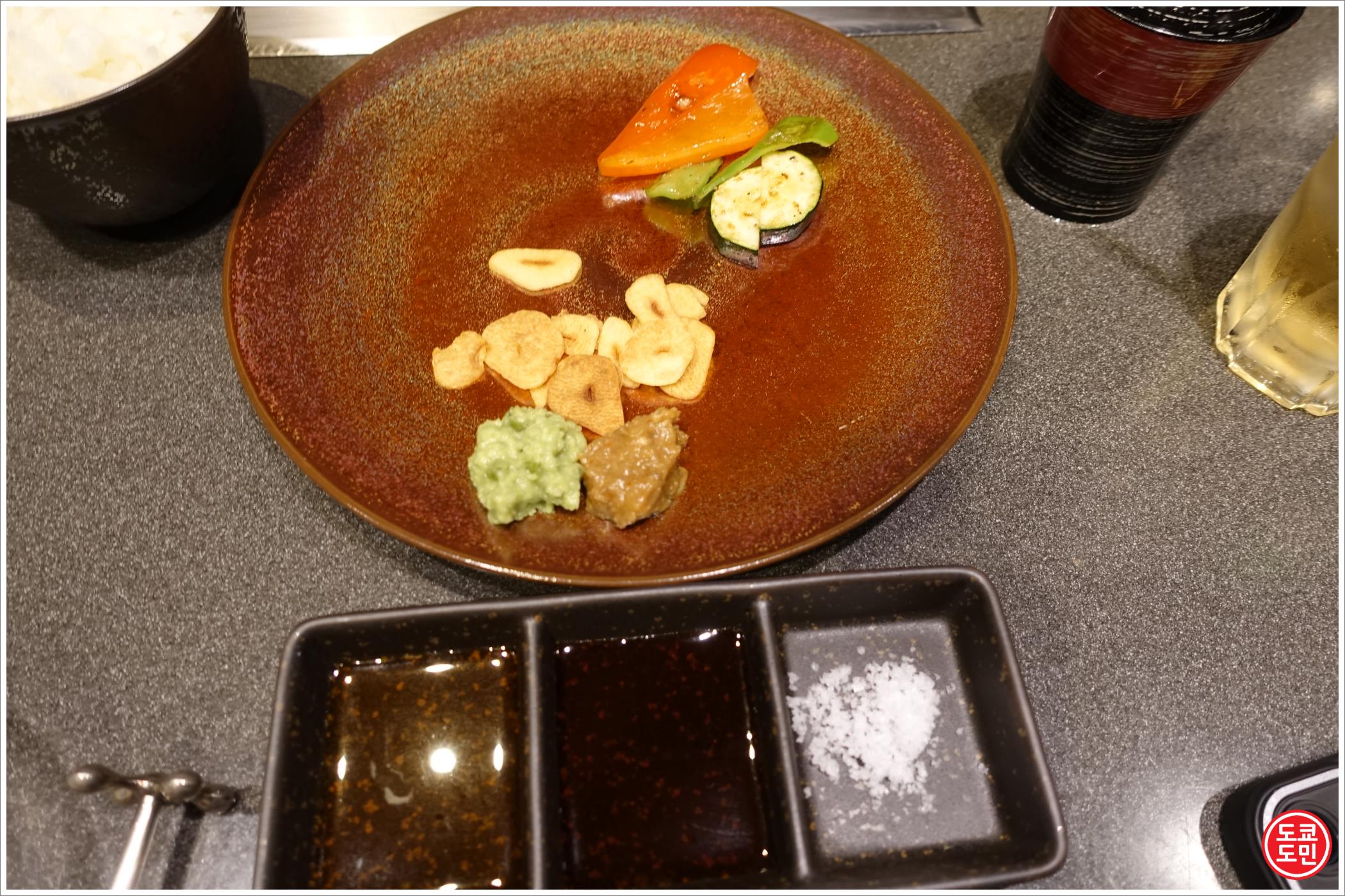 밥, 샐러드, 국은 별도로 880엔(약 8800원) 추가 요금 내야 합니다.