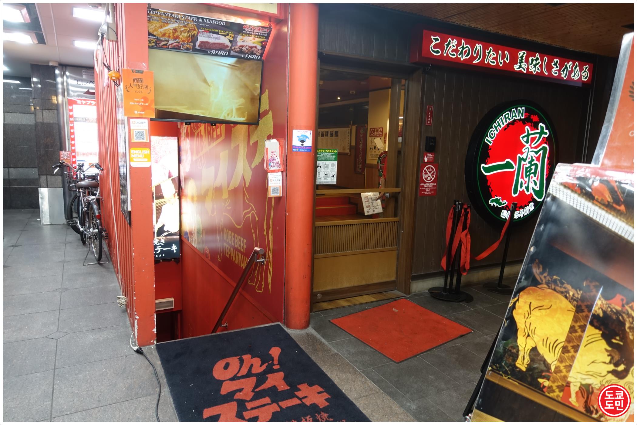이치란 가게 옆에 지하로 내려가는 계단이 있습니다.