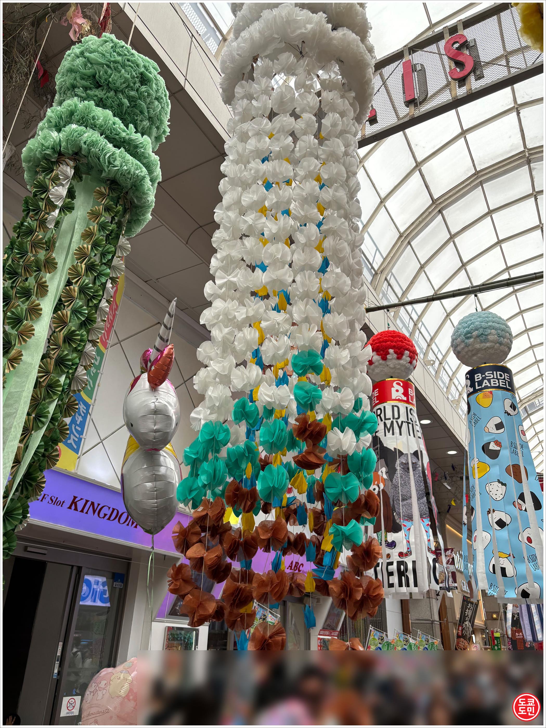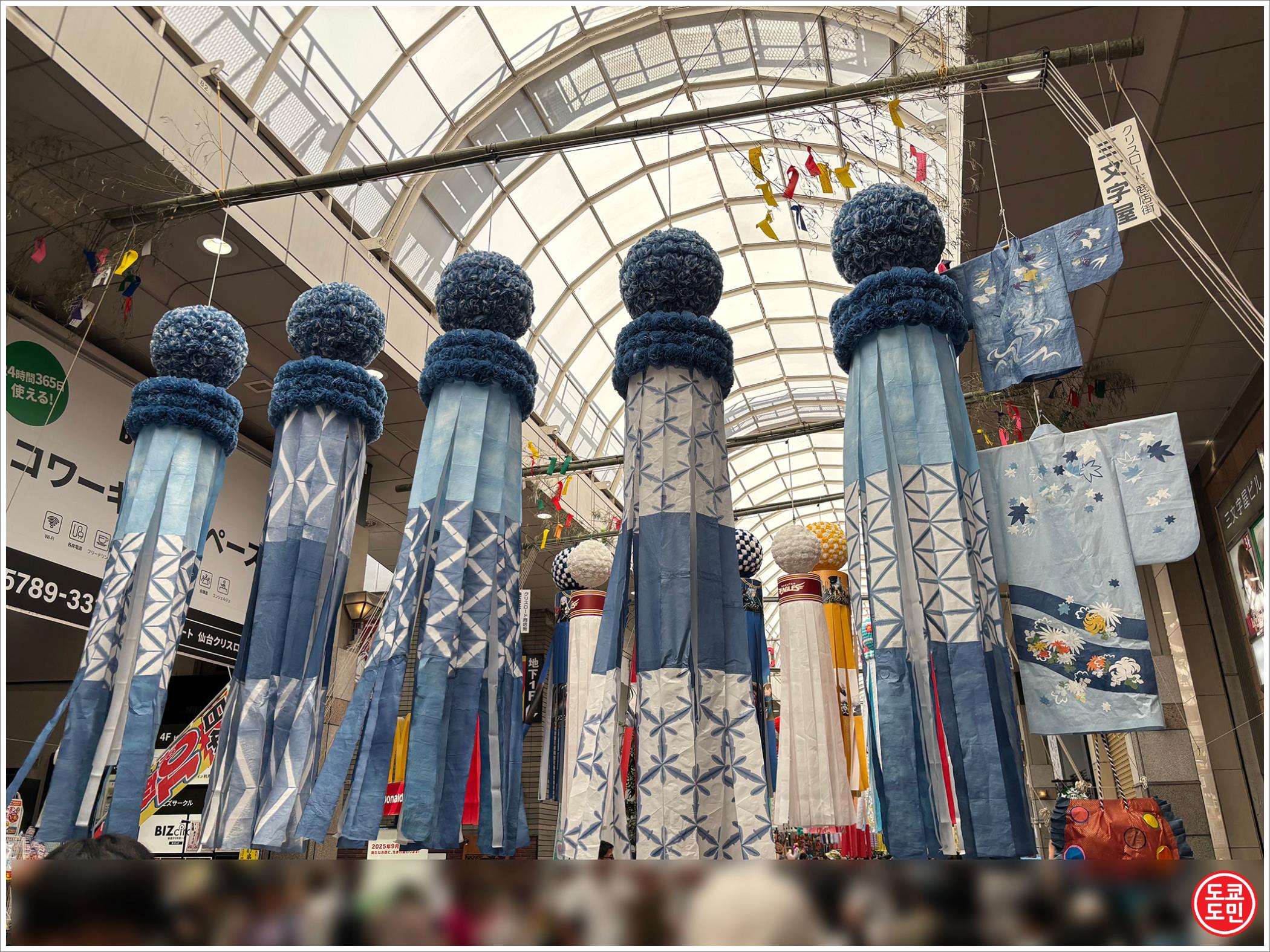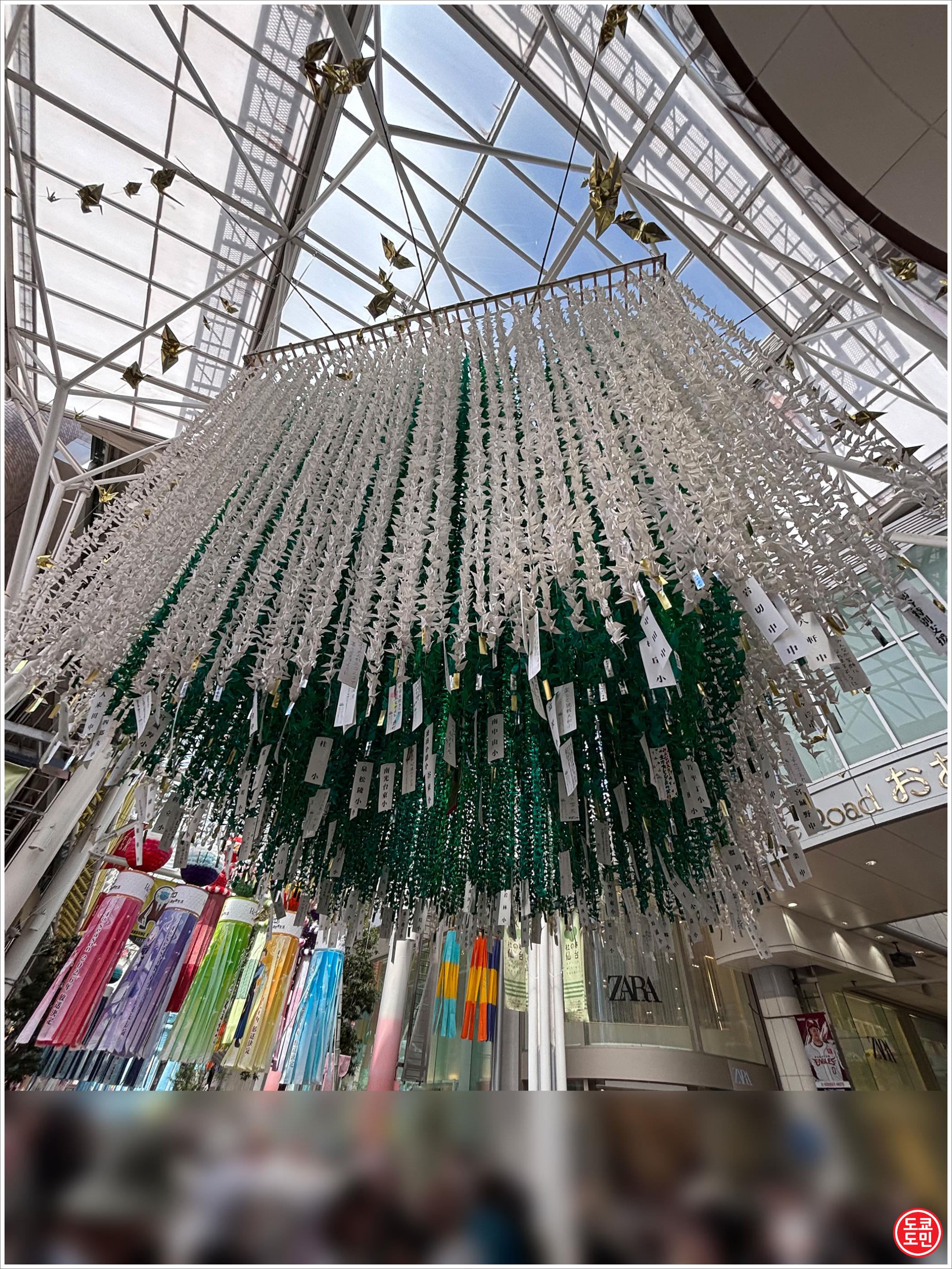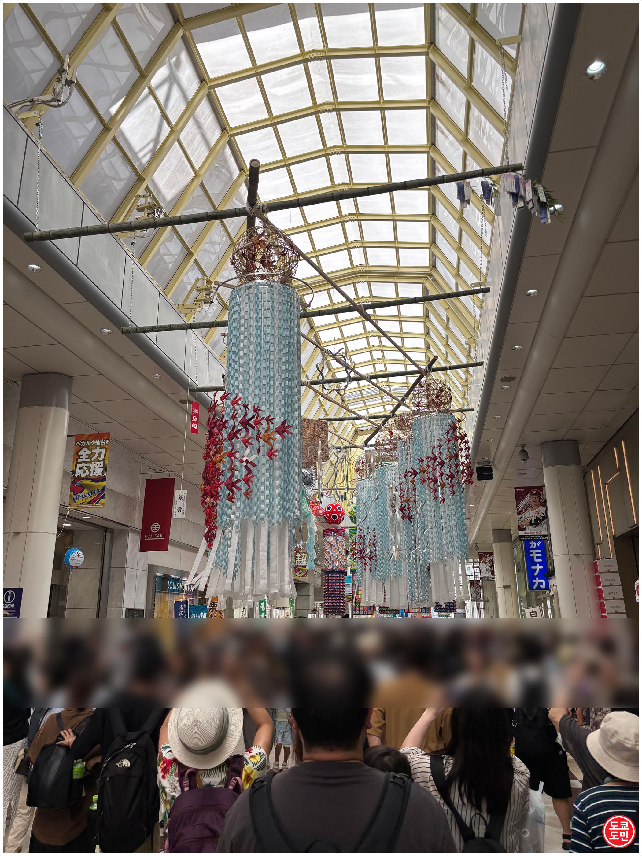 센다이 타나바타 마츠리(仙台七夕まつり)의 명물인게 천장에 걸려있습니다.