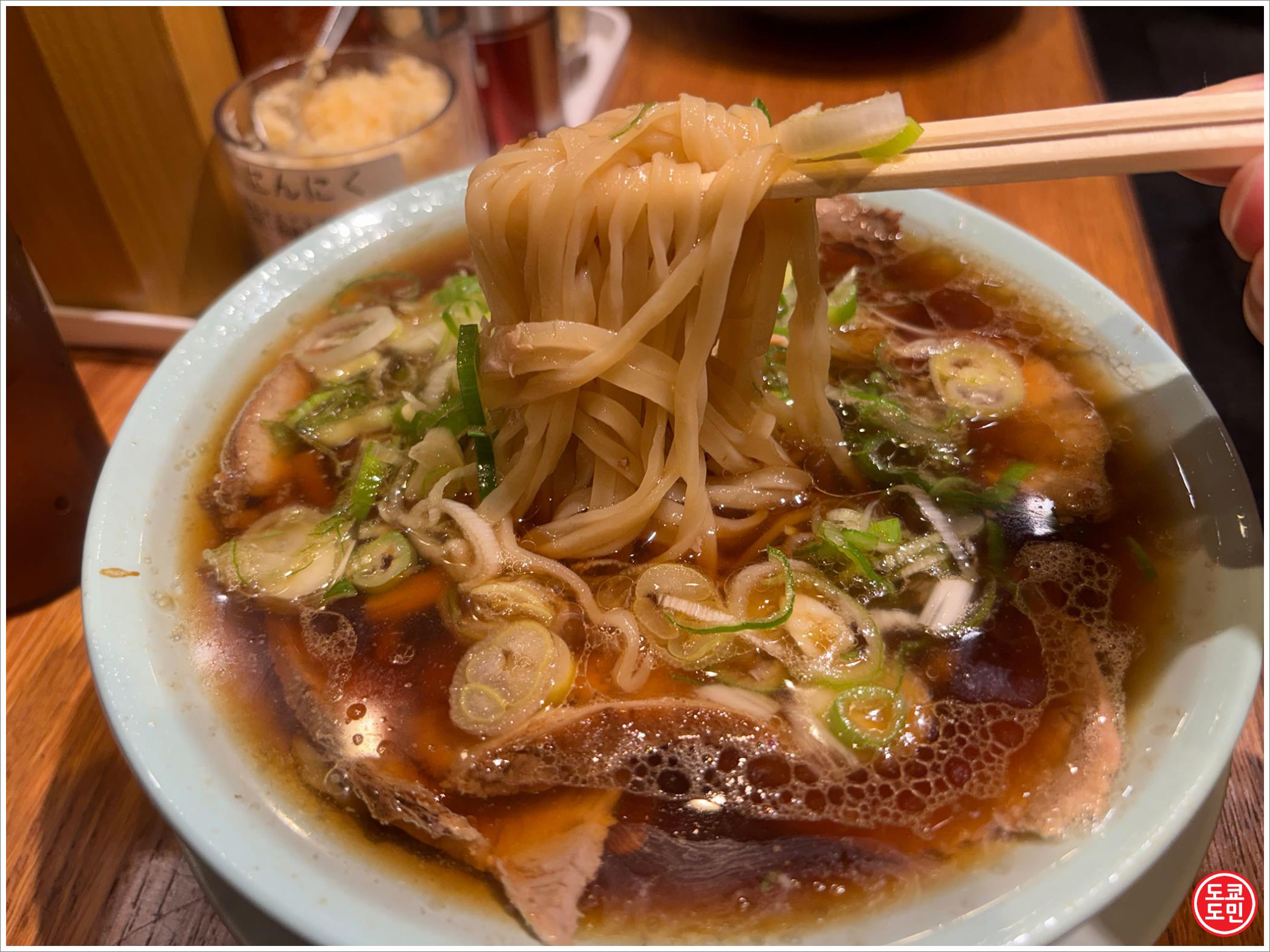 간장(쇼유) 베이스의 라멘이었어요.