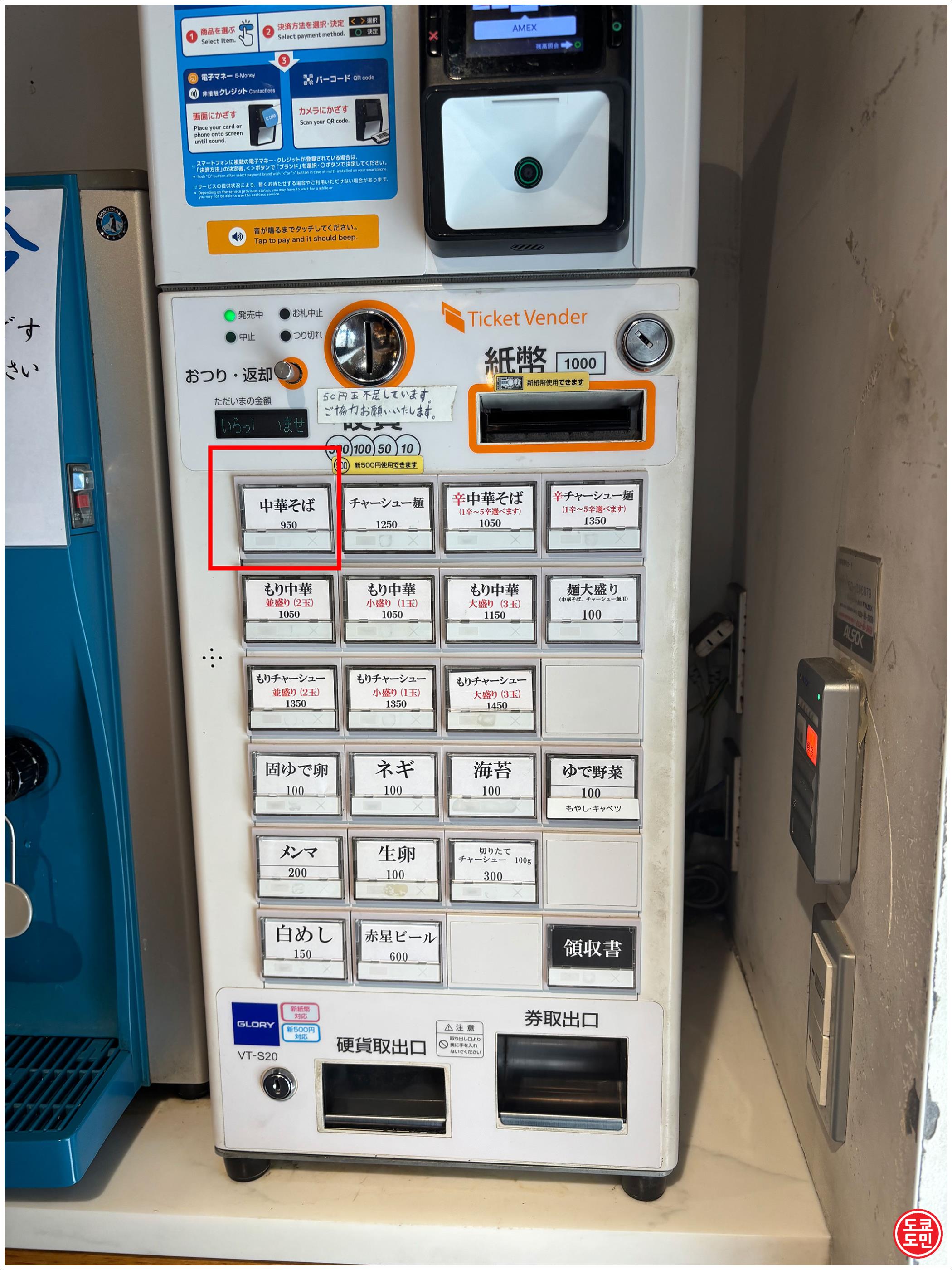 식권 발매기는 가게 안에 들어가면 바로 오른쪽에 있습니다.