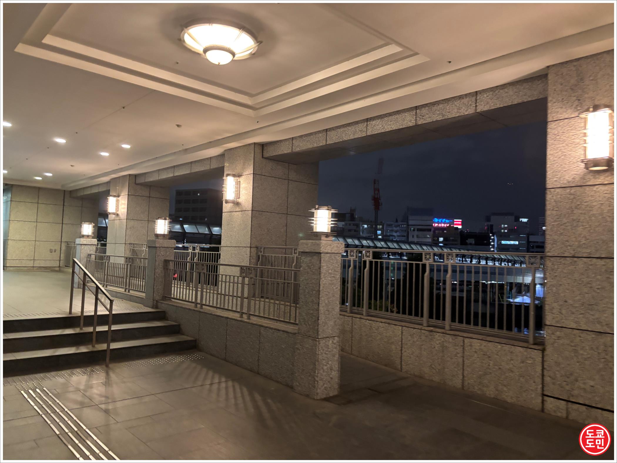 오사카 교바시역에서 저 다리로 건너오면 "호텔 몬토레 라 스루 오사카(ホテルモントレ ラ・スール大阪)"의 2층과 연결되어 있고, 로비로 바로 갈 수 있습니다.