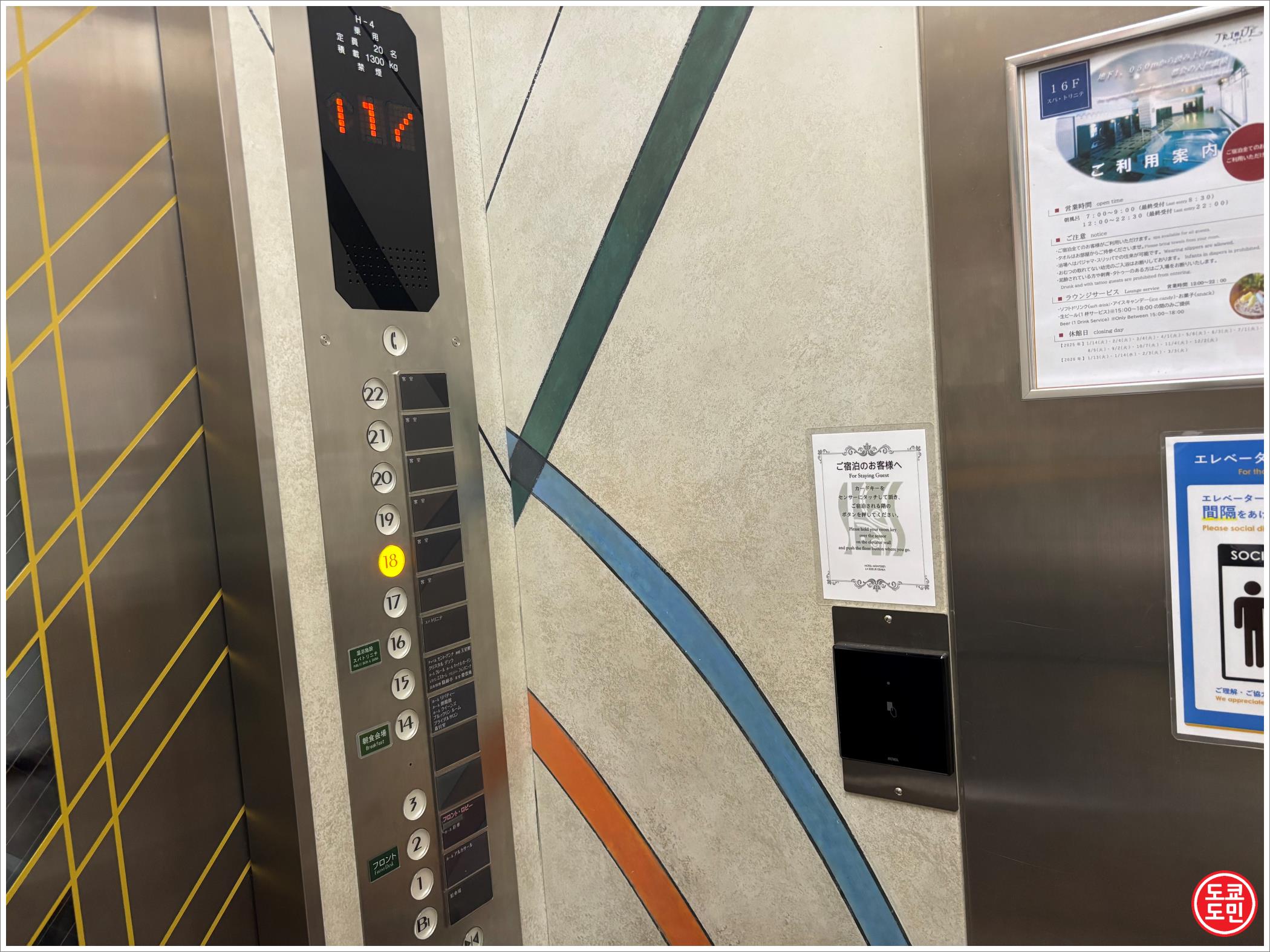 엘리베이터는 카드키로 찍어야 층 버튼을 누를 수 있습니다.