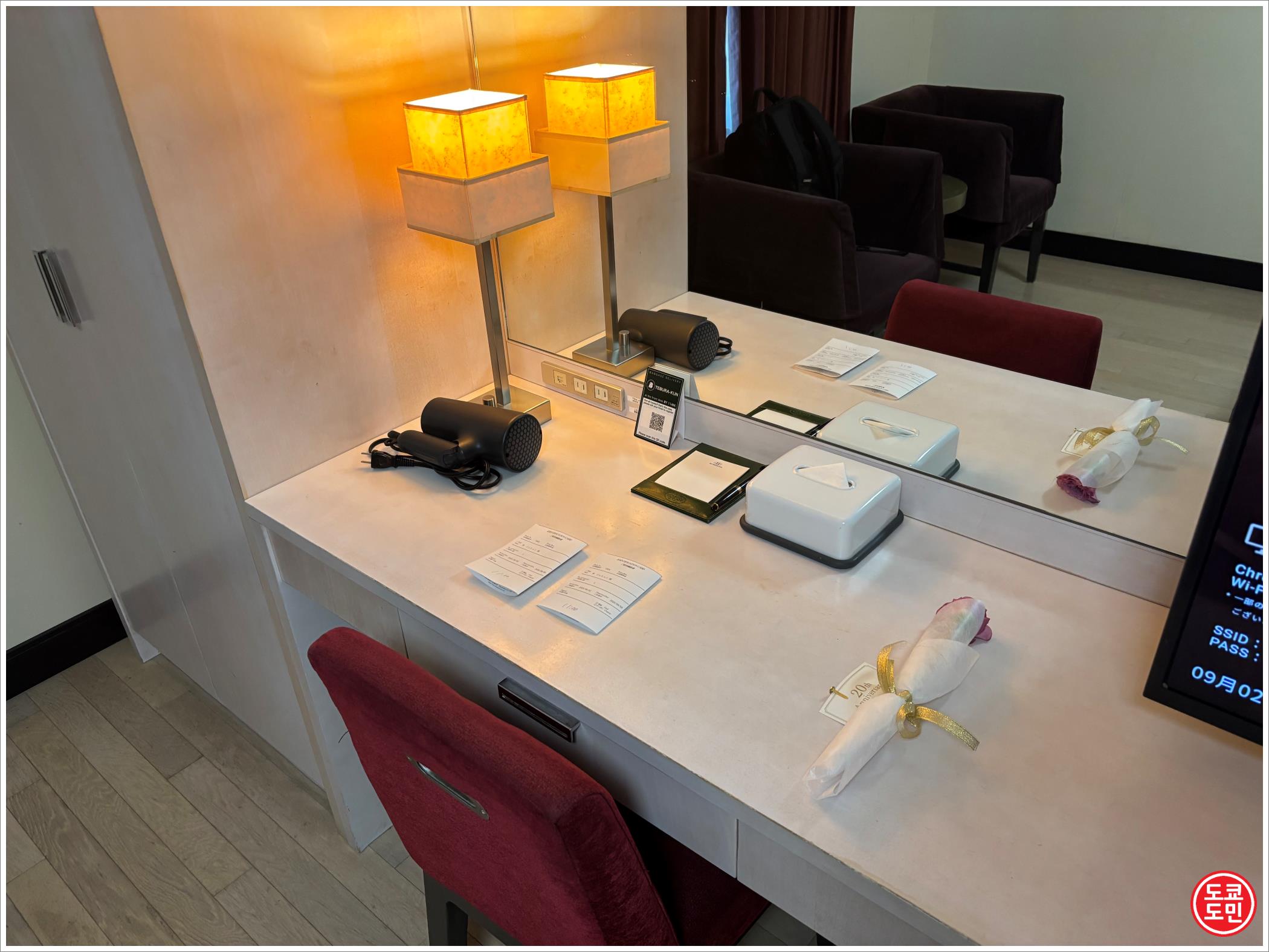 사진으로는 알아보기 힘들지만 스탠드 라이트도 있고, 충분한 작업 공간도 있어서 비지니스 업무하기에도 적당했습니다.