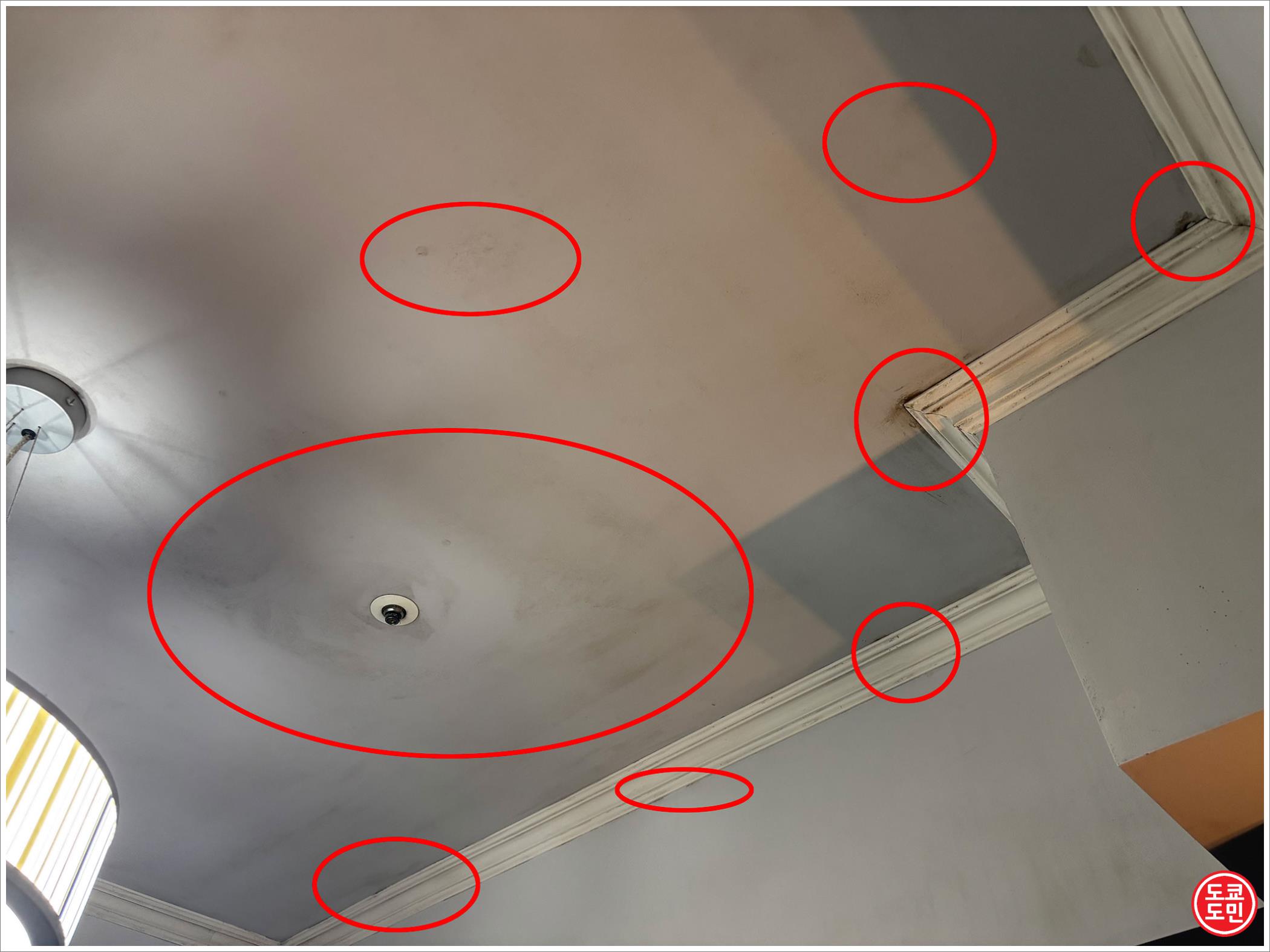 천장을 보니 그래도 닦을려고 노력한 흔적은 보이더라고요.