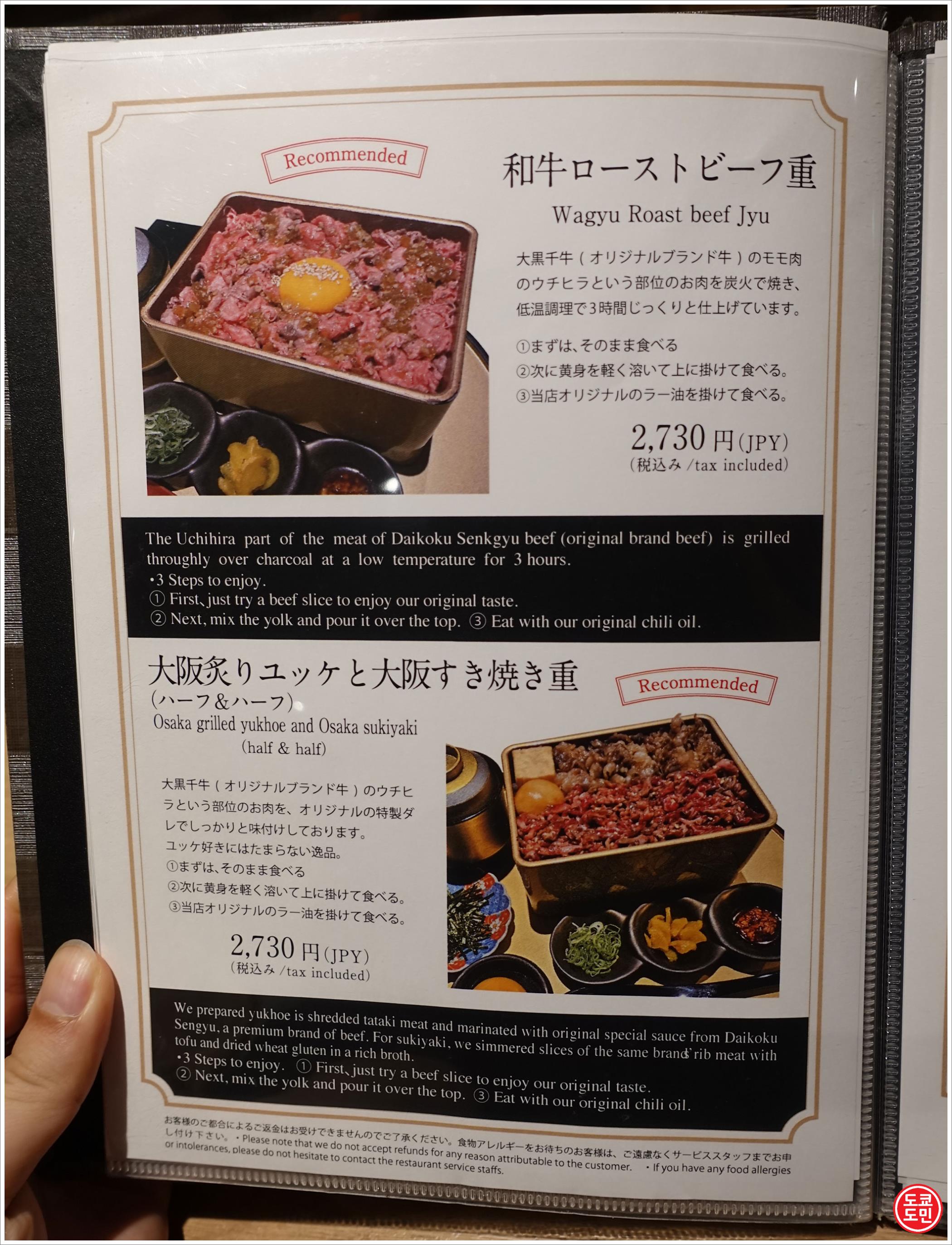 오사카 난바, 신사이바시에 있는 스테이크 덮밥 맛집 "이다텐(韋駄天)".