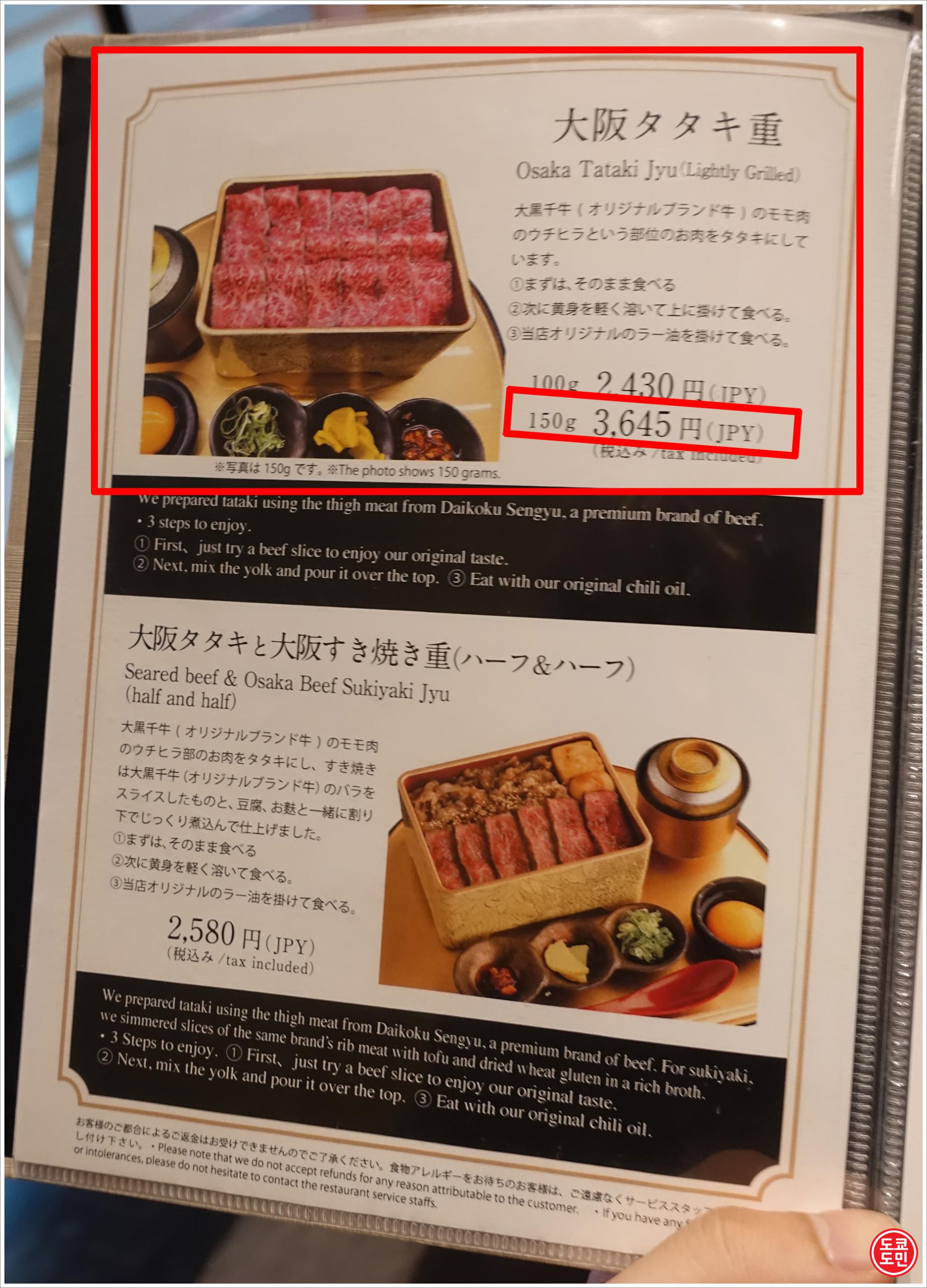 저는 여기서 저는 "오사카 타타키쥬(大阪タタキ重)" 라는 메뉴입니다.