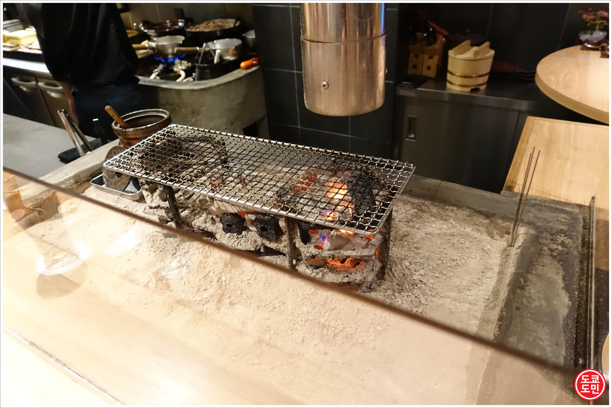 오픈형 주방인데 요리에 따라서는 숯불에 구워주기도 하더라고요.
