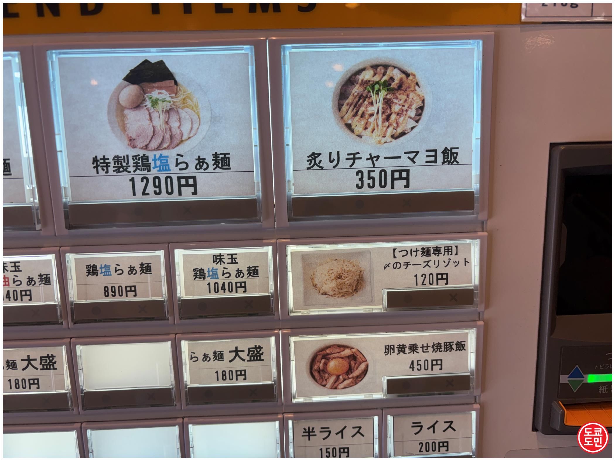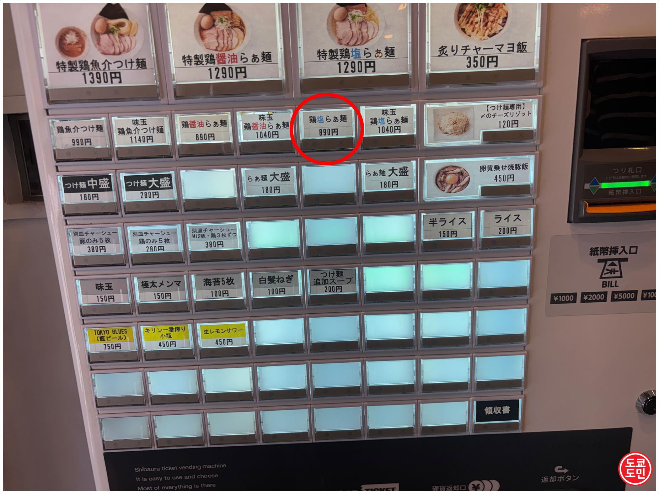 시오라멘(소금라면) 鶏塩らぁ麵 : 890엔 (약 8900원).