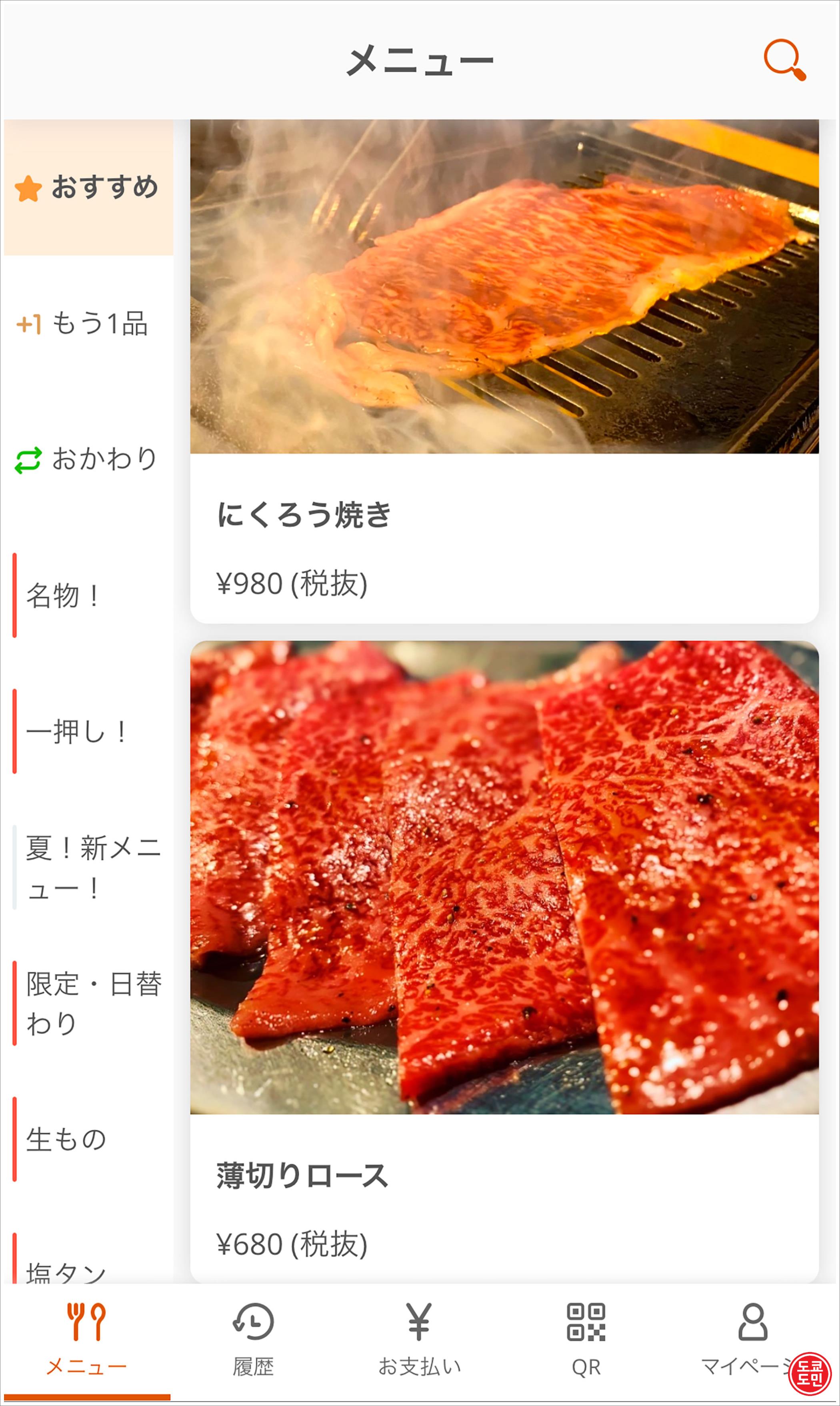 메뉴는 자신의 스마트폰으로 QR 코드를 읽어서 사이트가 표시되면 거기서 주문을 하는 방식이었습니다.