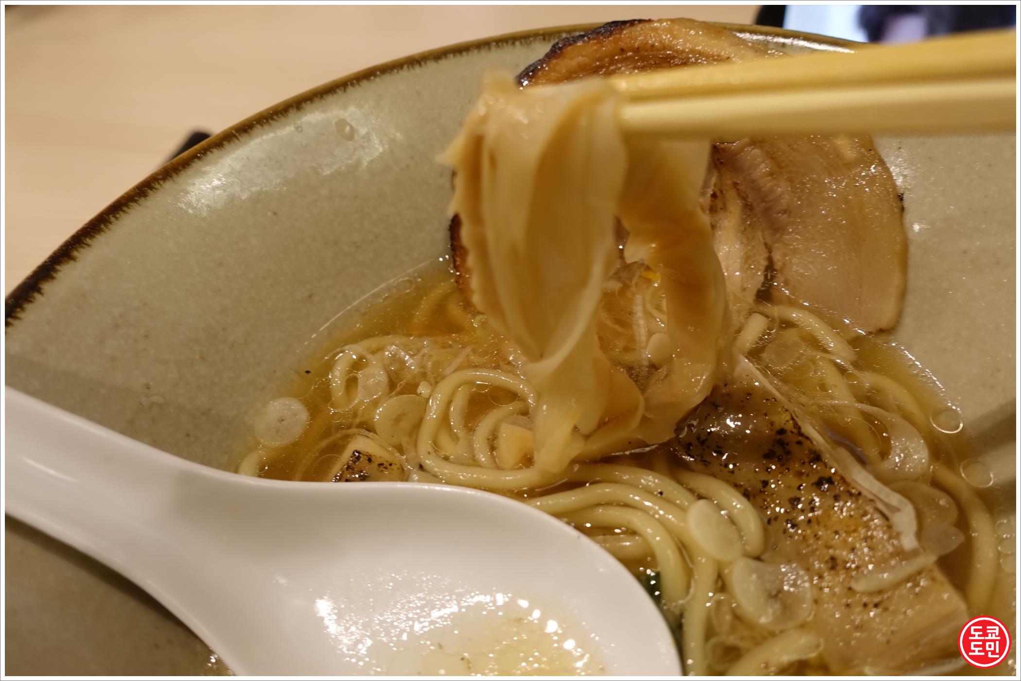 펀치력이 약한 국물과 시오라멘과는 어울리지 않는 두툼한 면발!!!