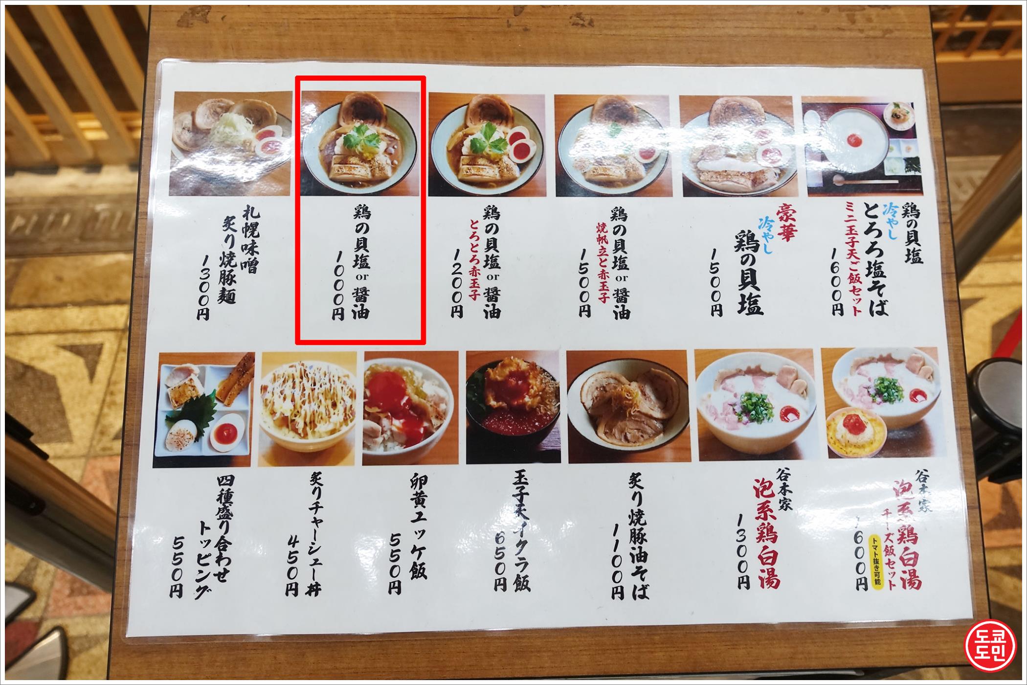 "鶏の貝塩 or 醬油" 라는 1000엔짜리 메뉴인데, 시오라멘(소금 라면) 혹은 쇼유라멘(간장 라면) 중에 골라야 합니다.