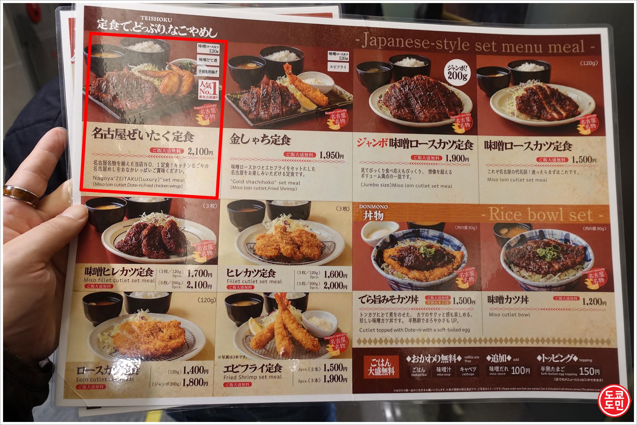이건 나고야의 명물인 미소카츠와 테바사키를 한번에 먹을 수 있어서 간판 메뉴로 크게 걸려있더라고요.