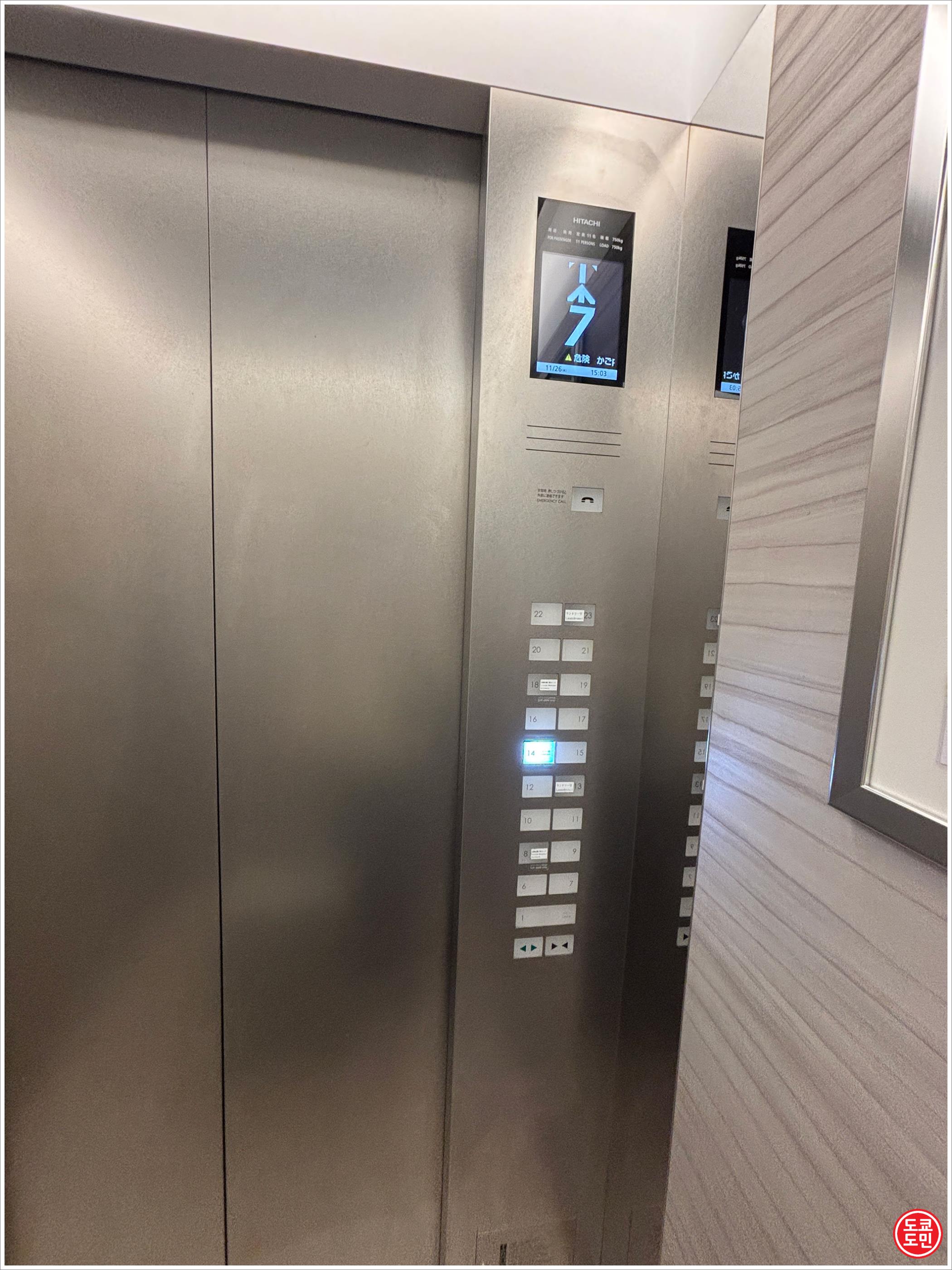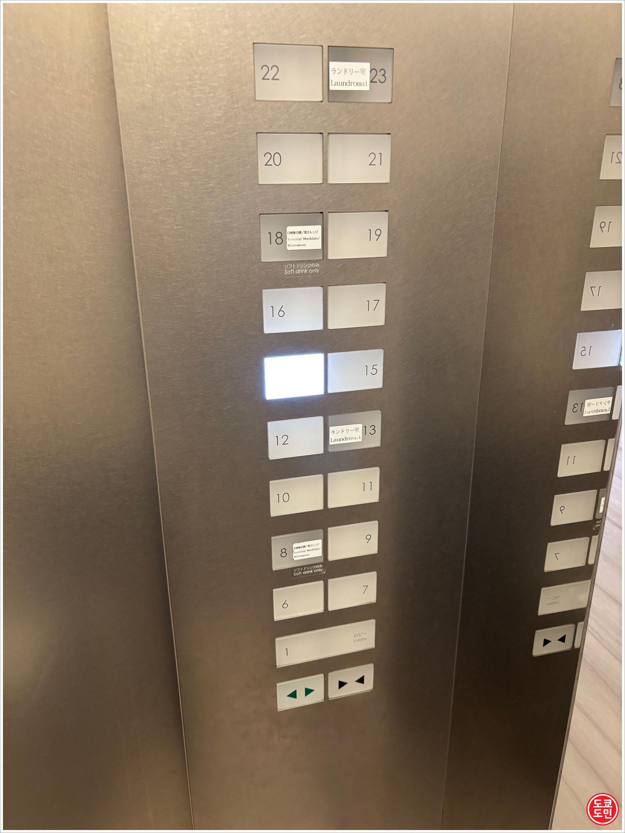 엘리베이터는 3기가 있고, 엘리베이터 앞에 코인 란도리(동전 빨래방)이 있었습니다.