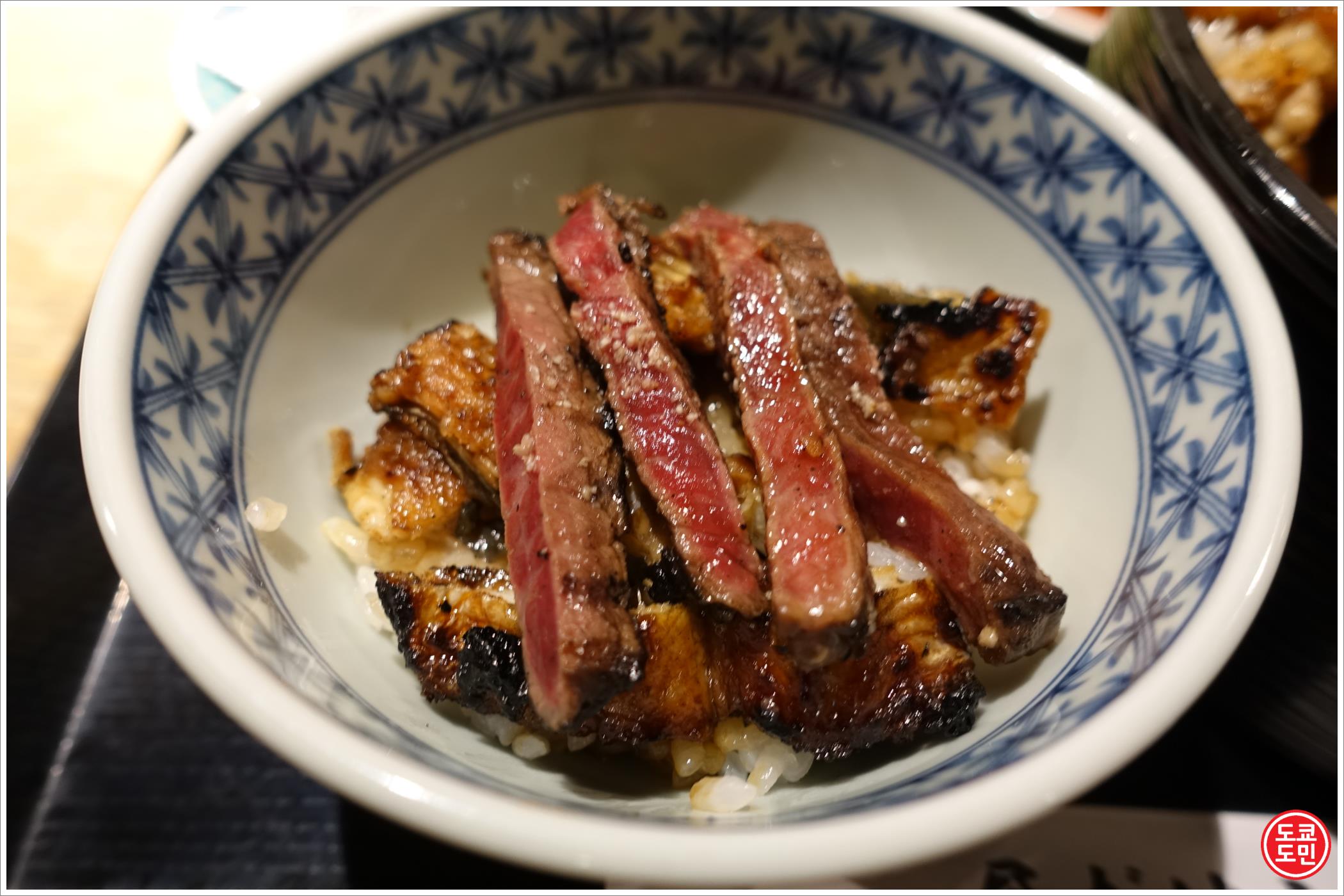 그리고 아래의 사진이 나고야 여행 마지막 날에 주문해서 먹은 와규(소고기)와 우나기가 같이 나오는 히츠마부시입니다.