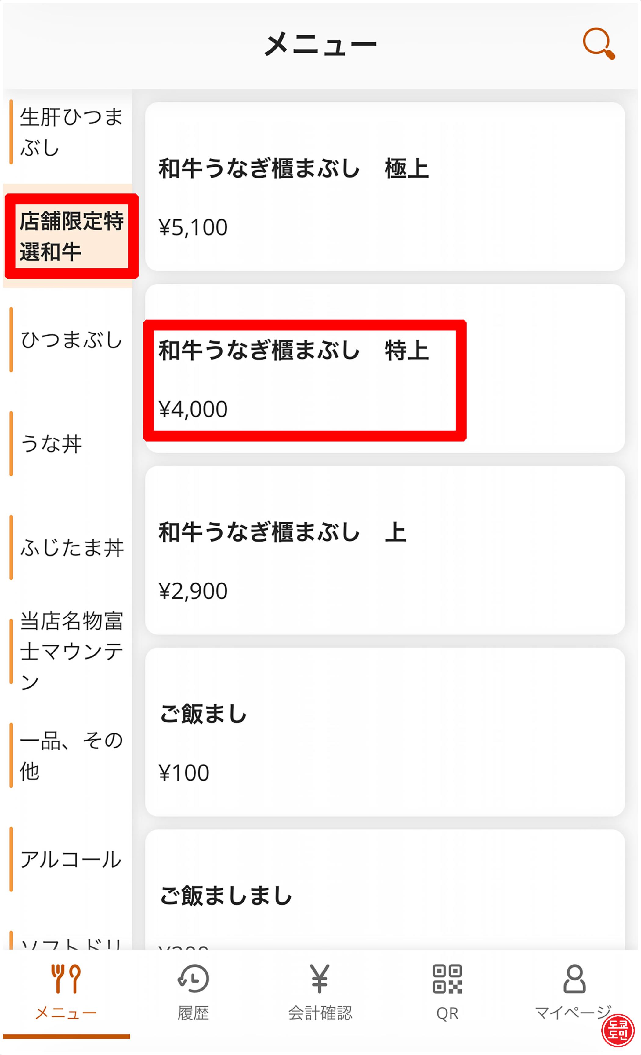 와규 우나기 히츠마부시 특상(和牛うなぎひつまぶし 特上) : 우나기 1마리 사용