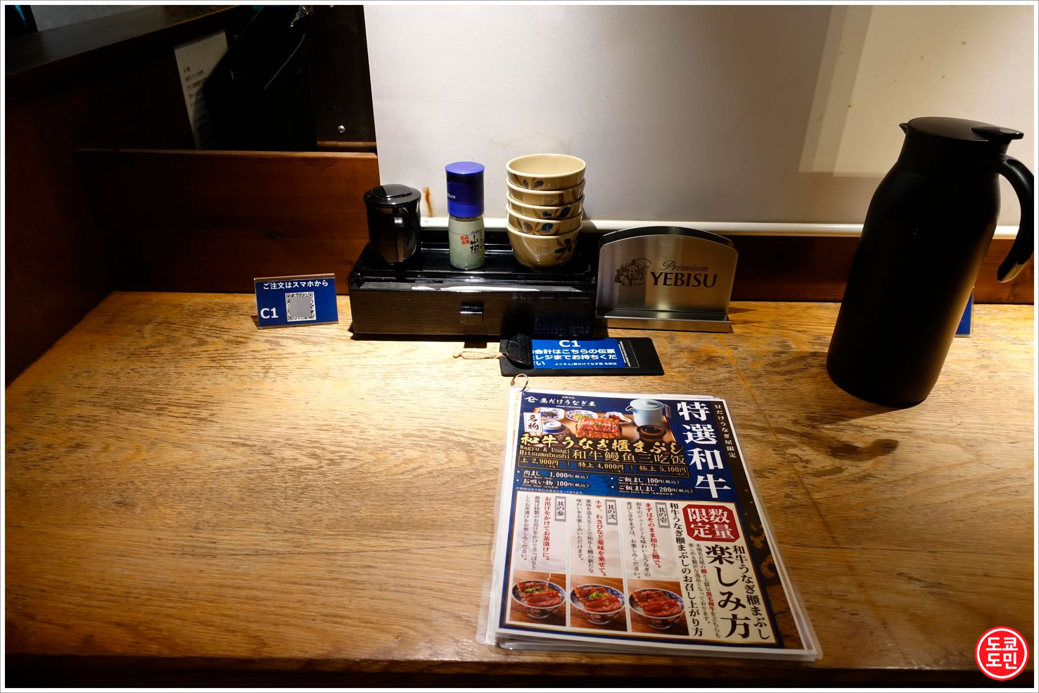 나고야 여행 첫날에 너무 맛있어서 나고야 여행 마지막 날에 다시 방문해서 이 가게의 인기 메뉴인 소고기(와규)와 우나기가 같이 나오는 "히츠마부시"를 주문했습니다.