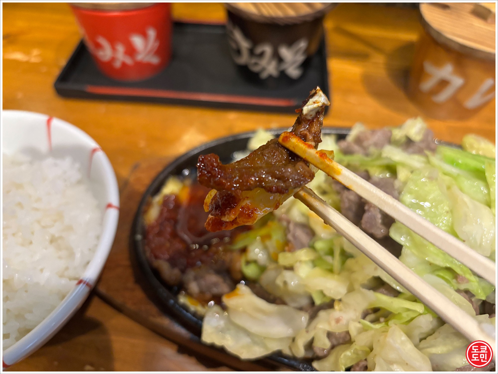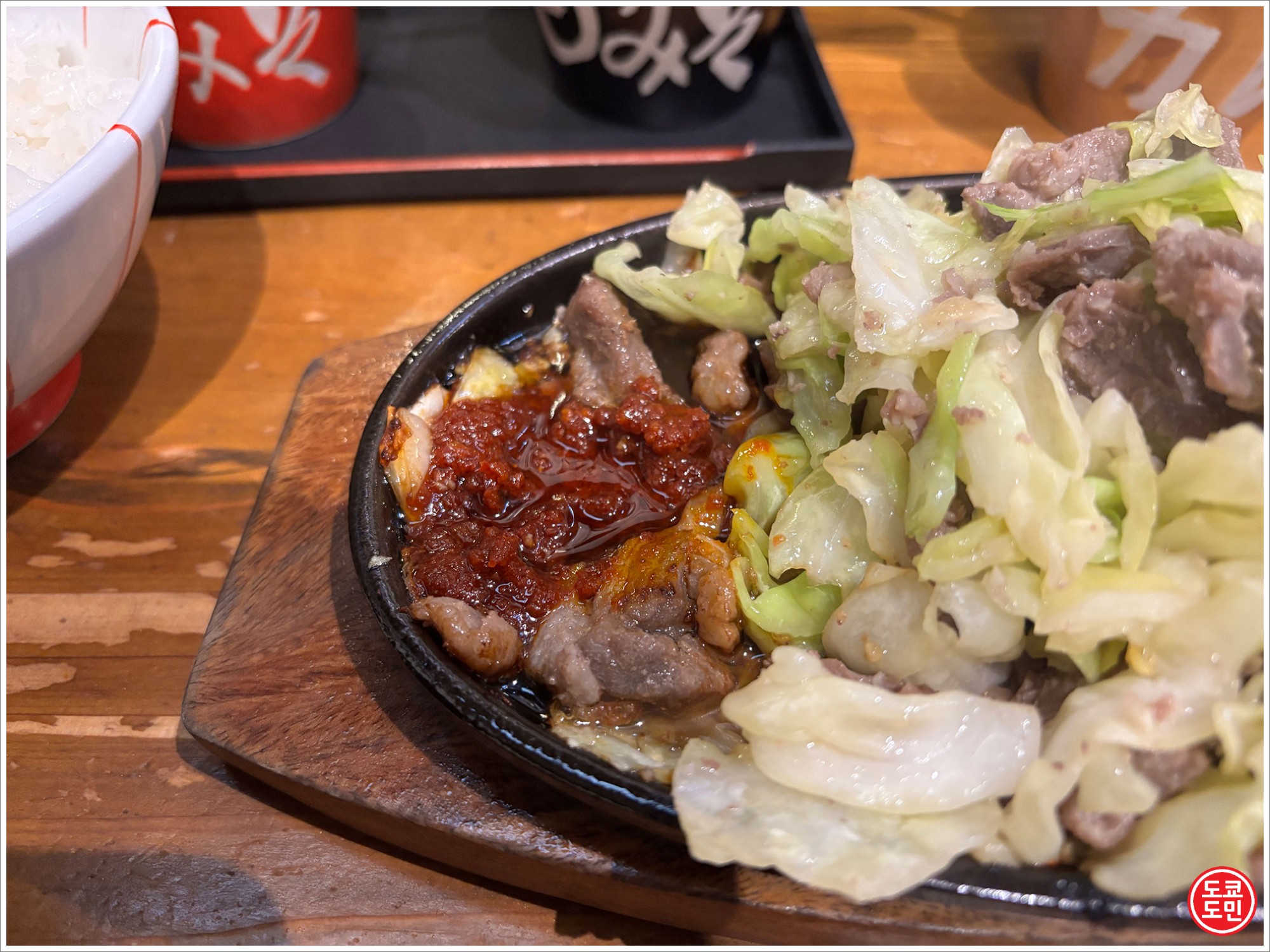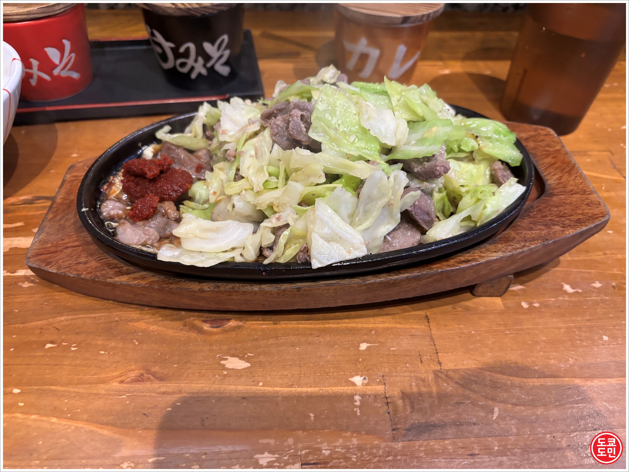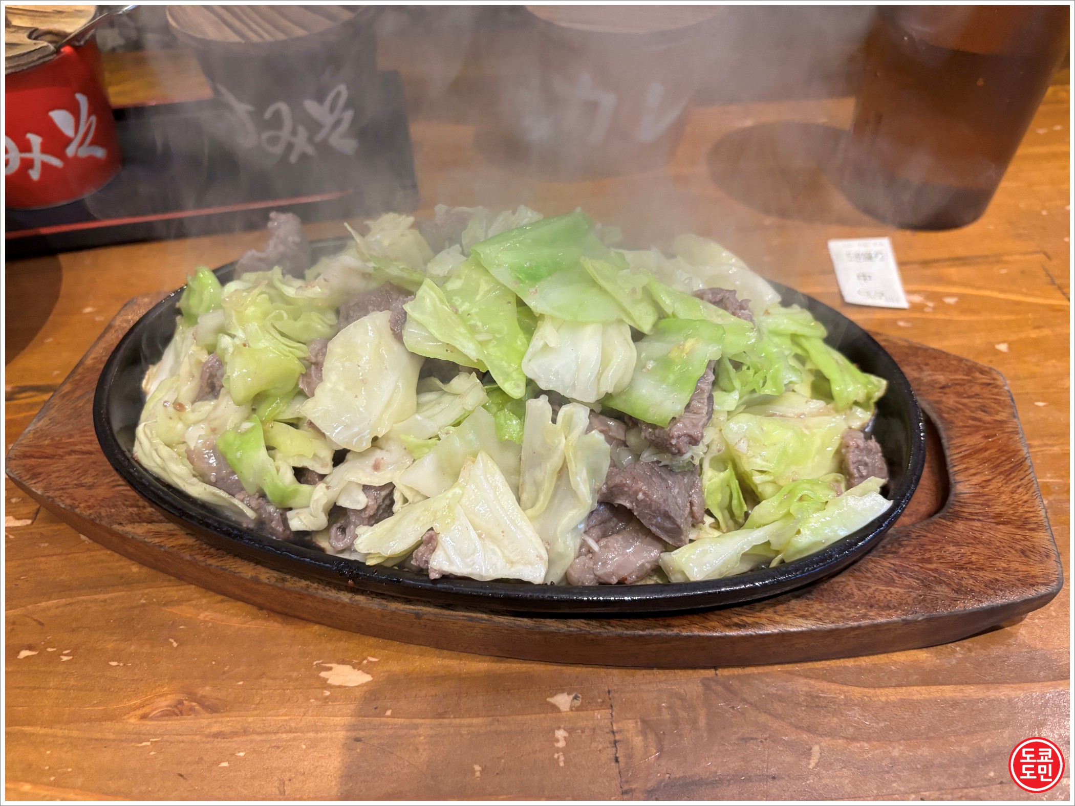 아주 심플하게 양배추와 돼지고기를 볶아서 철판구이에 올려서 나오는 요리입니다.