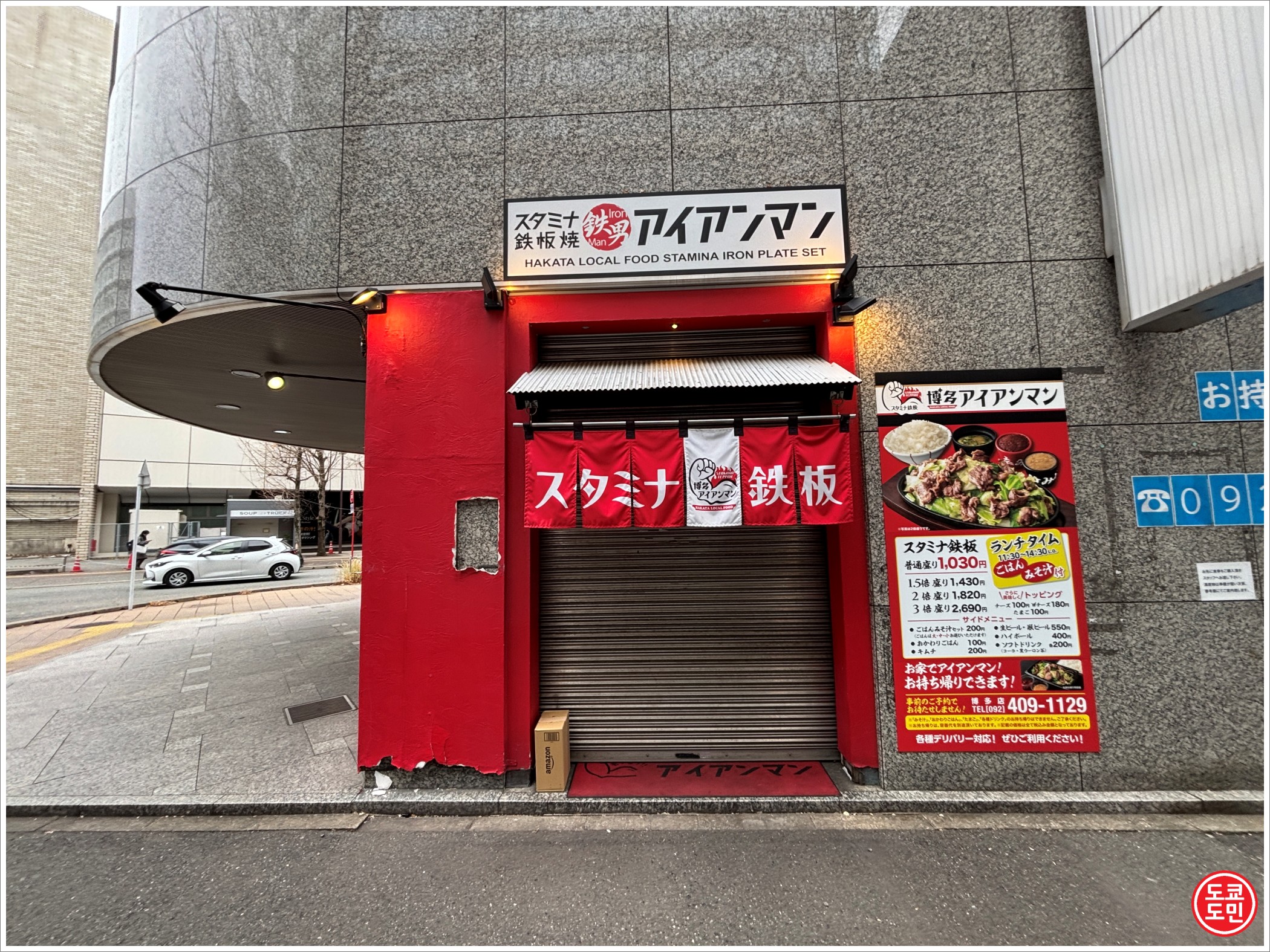 스테미너 철판구이 "아이언맨" (スタミナ鉄板アイアンマン) 하카타점의 외관입니다.