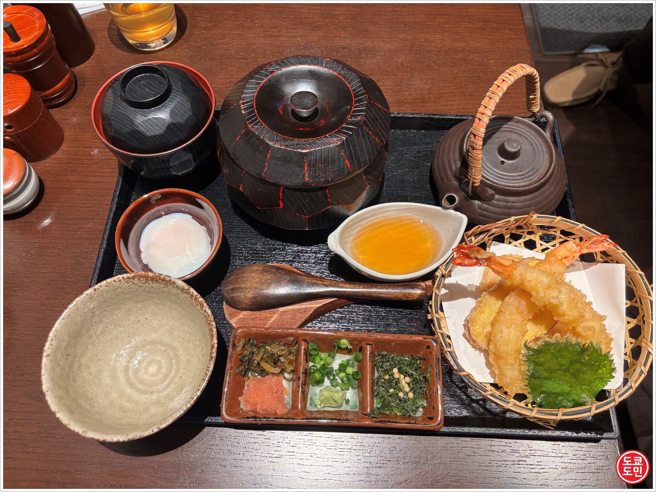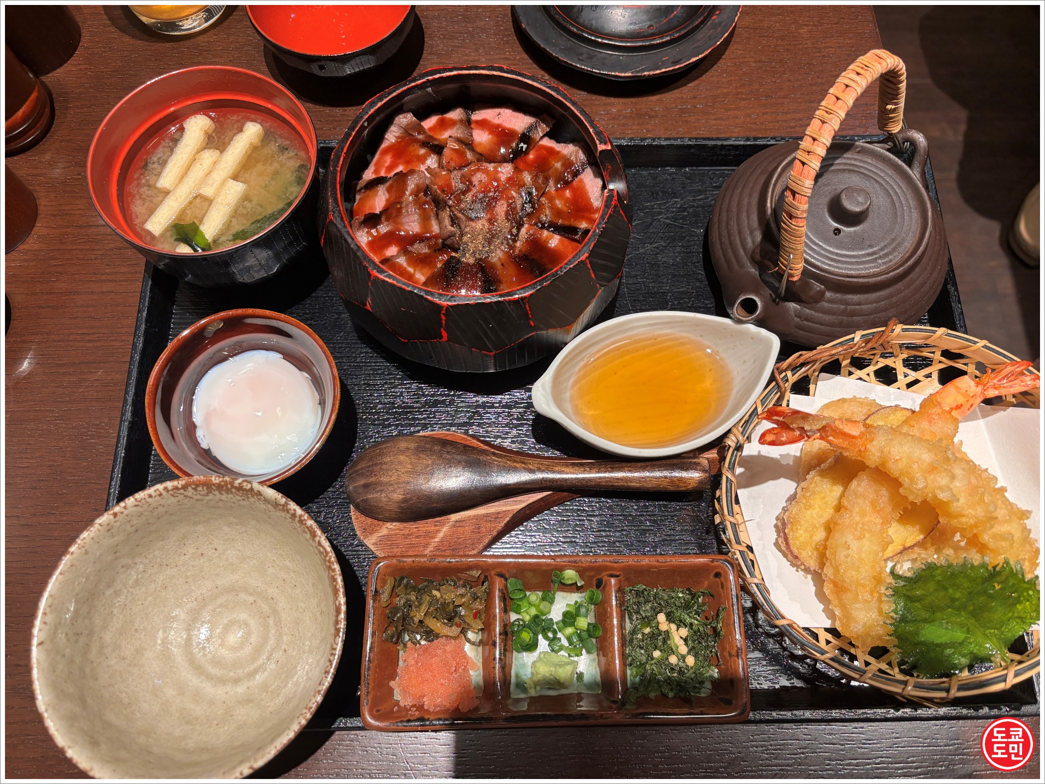 "쿠마모토 와규 아카규 히츠마부시와 텐푸라 고젠(熊本和牛 あか牛ひつまぶしと天ぷら御膳)" 라는걸 주문했습니다.