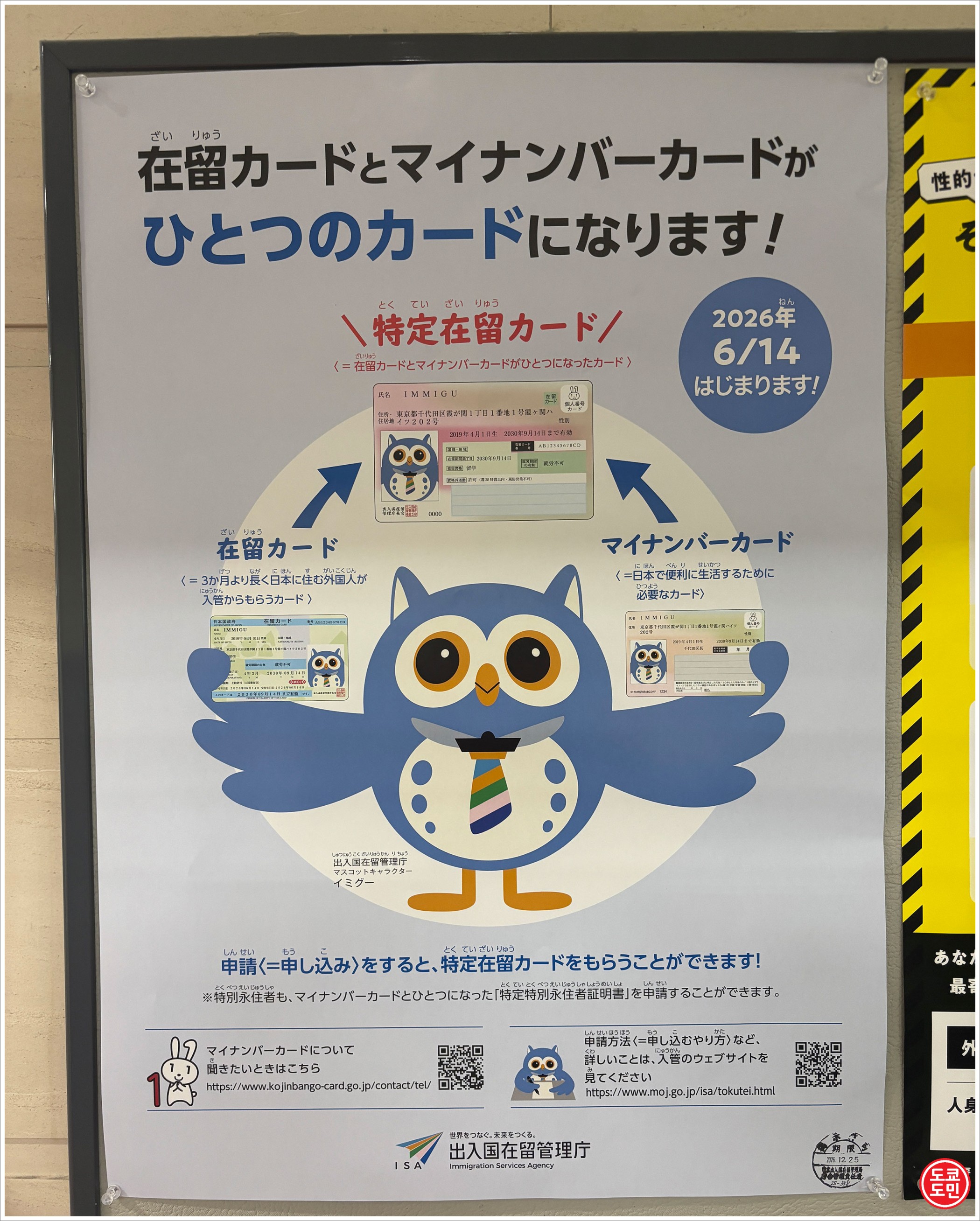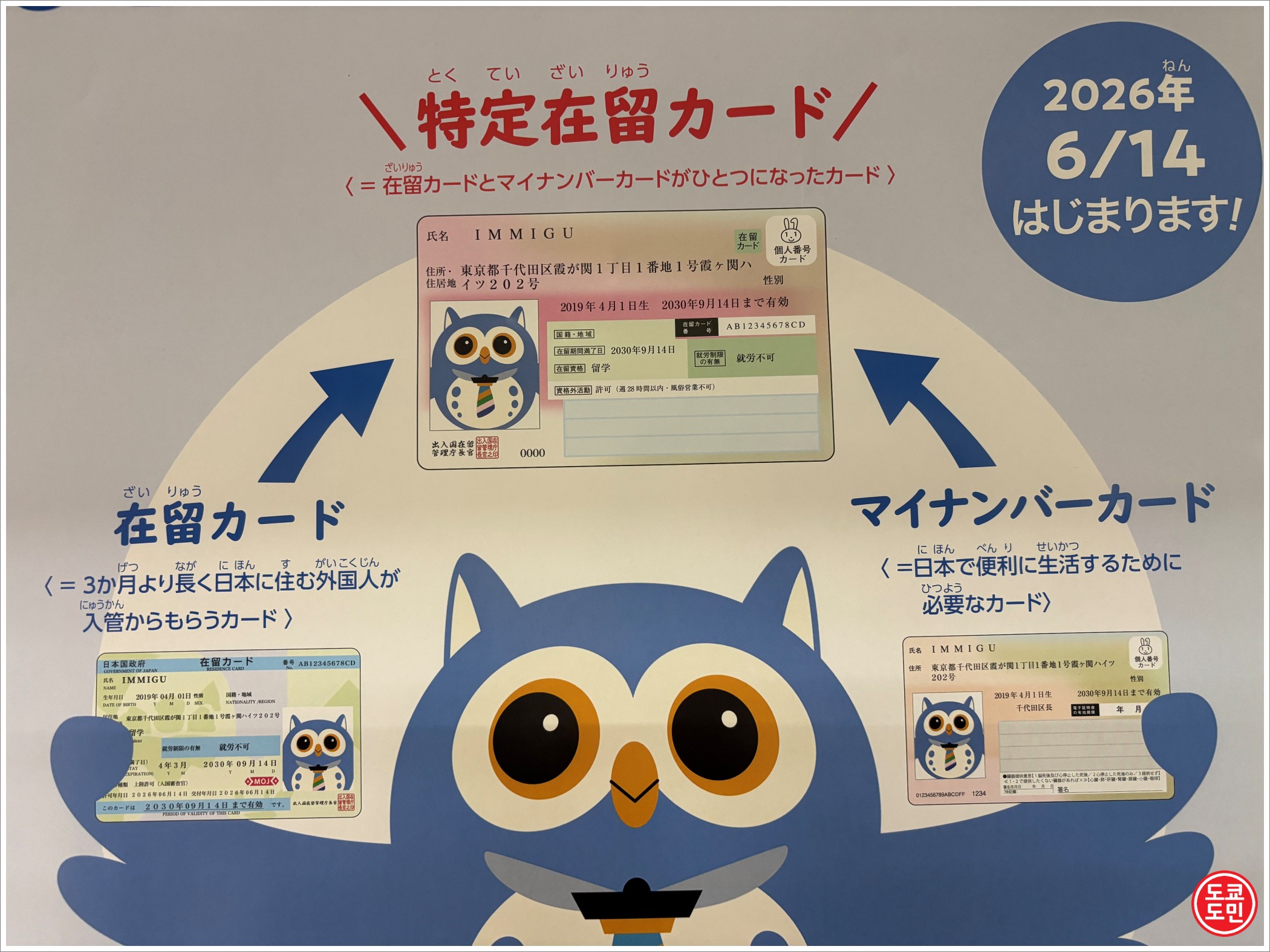2026년 6월 14일부터는 마이넘버카드에 재류카드가 통합된 "특정 재류 카드"가 발급된다고 합니다.