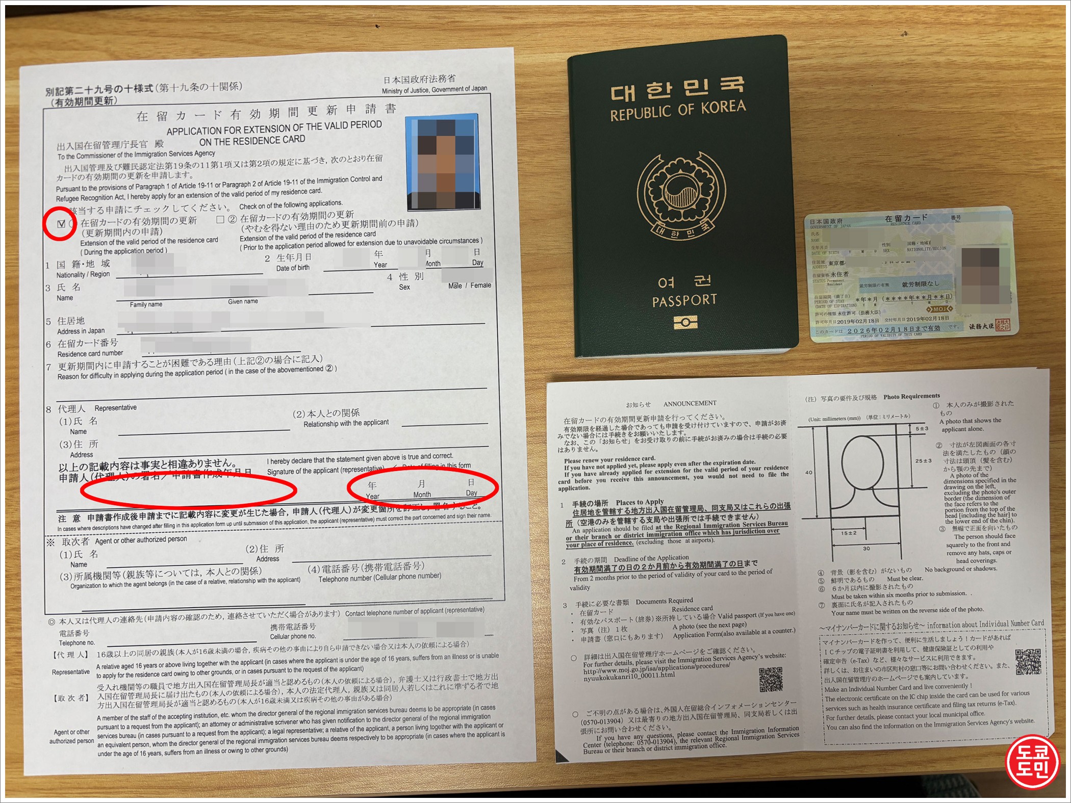 재류카드의 유효기간을 갱신하기 위한 서류입니다.