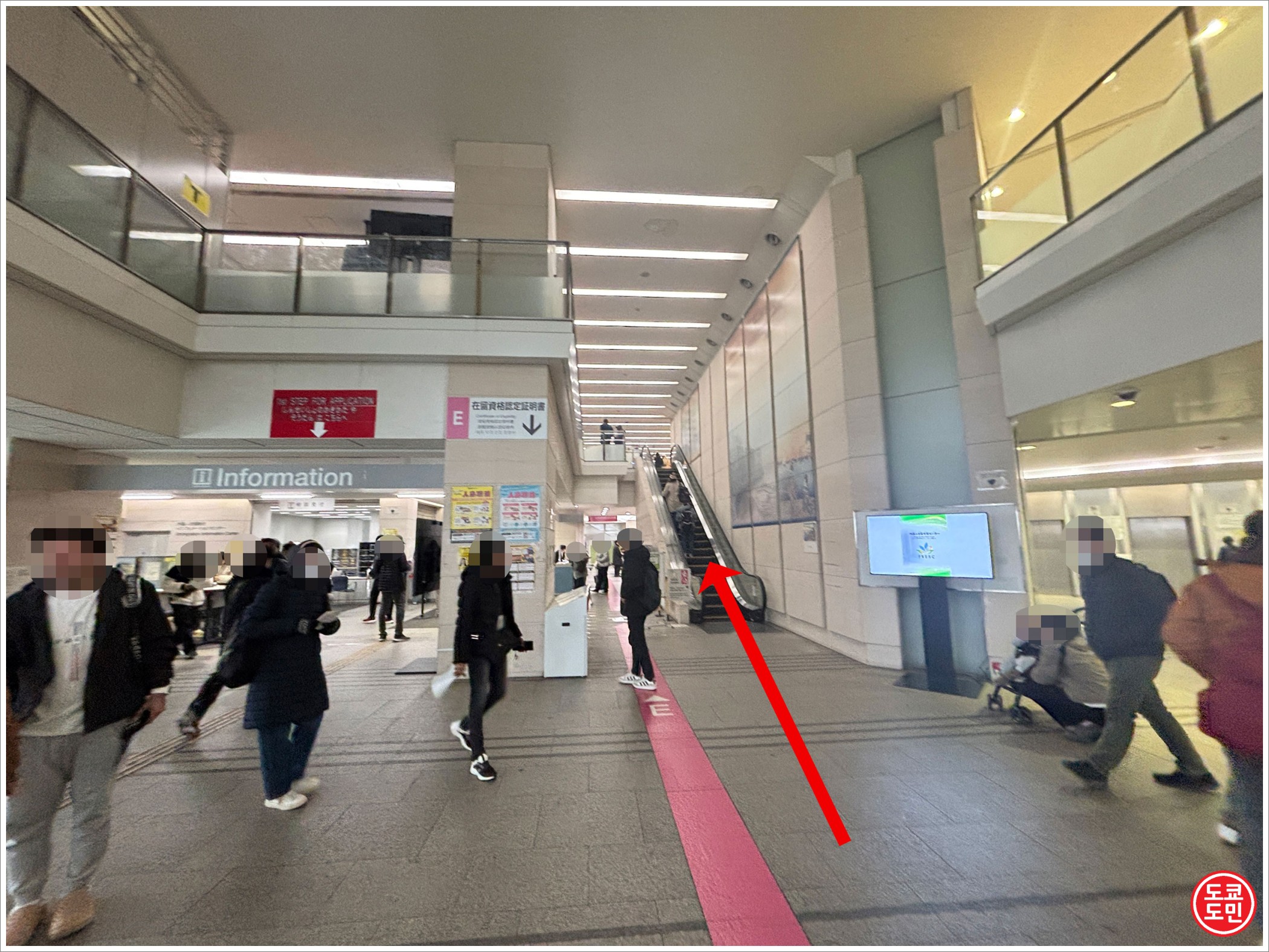 도쿄 출입국 관리국은 시나가와역에서 고난역으로 나가면 중앙에 있는 에스컬레이터로 1층으로 내려갑니다.