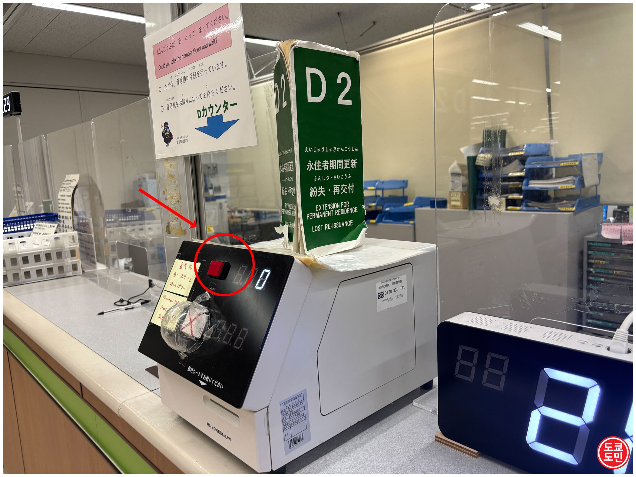 도쿄 출입국 재류 관리국의 입구로 들어오면 바로 2층에 올라가서 D2 창구로 이동합니다.