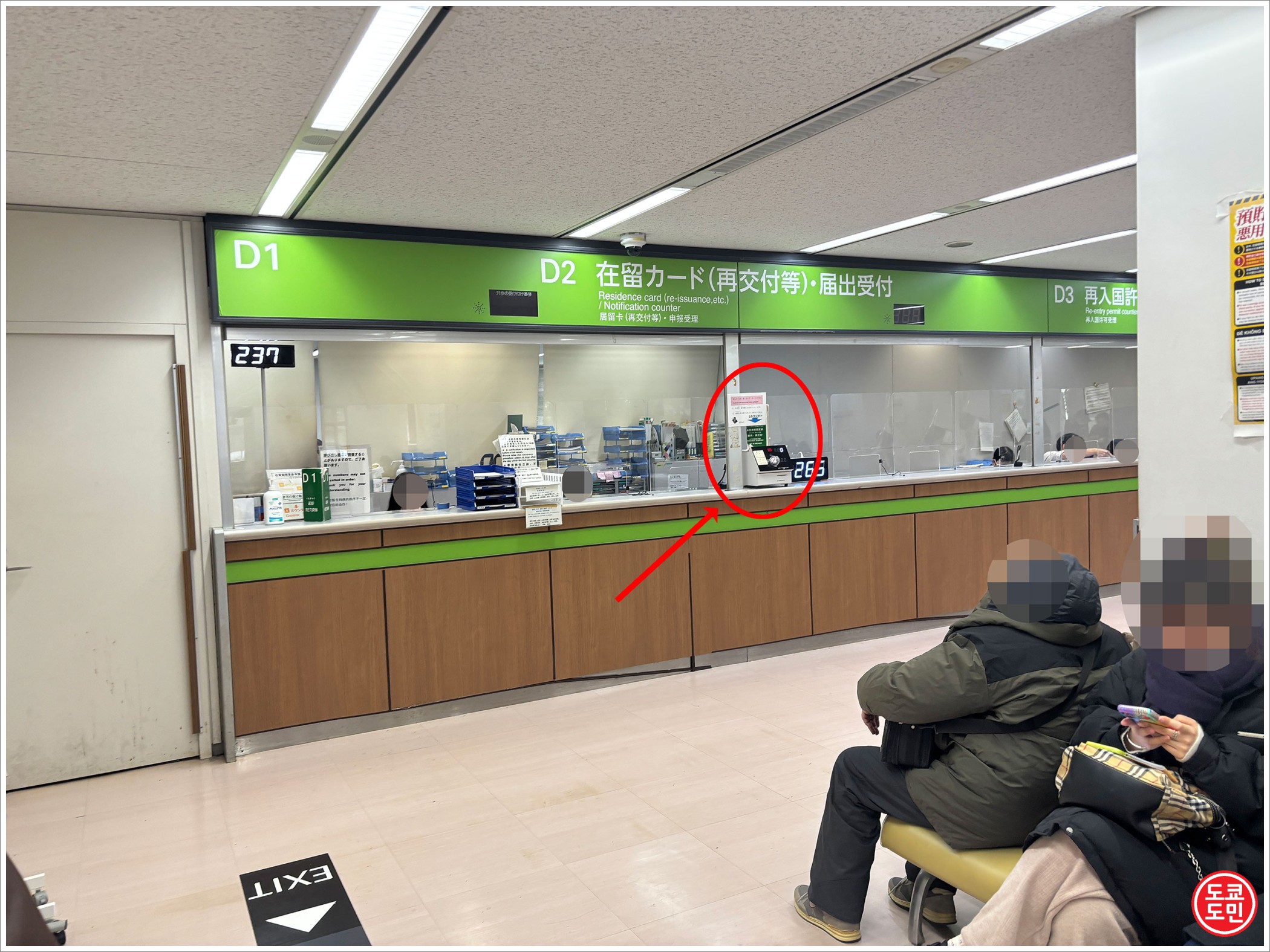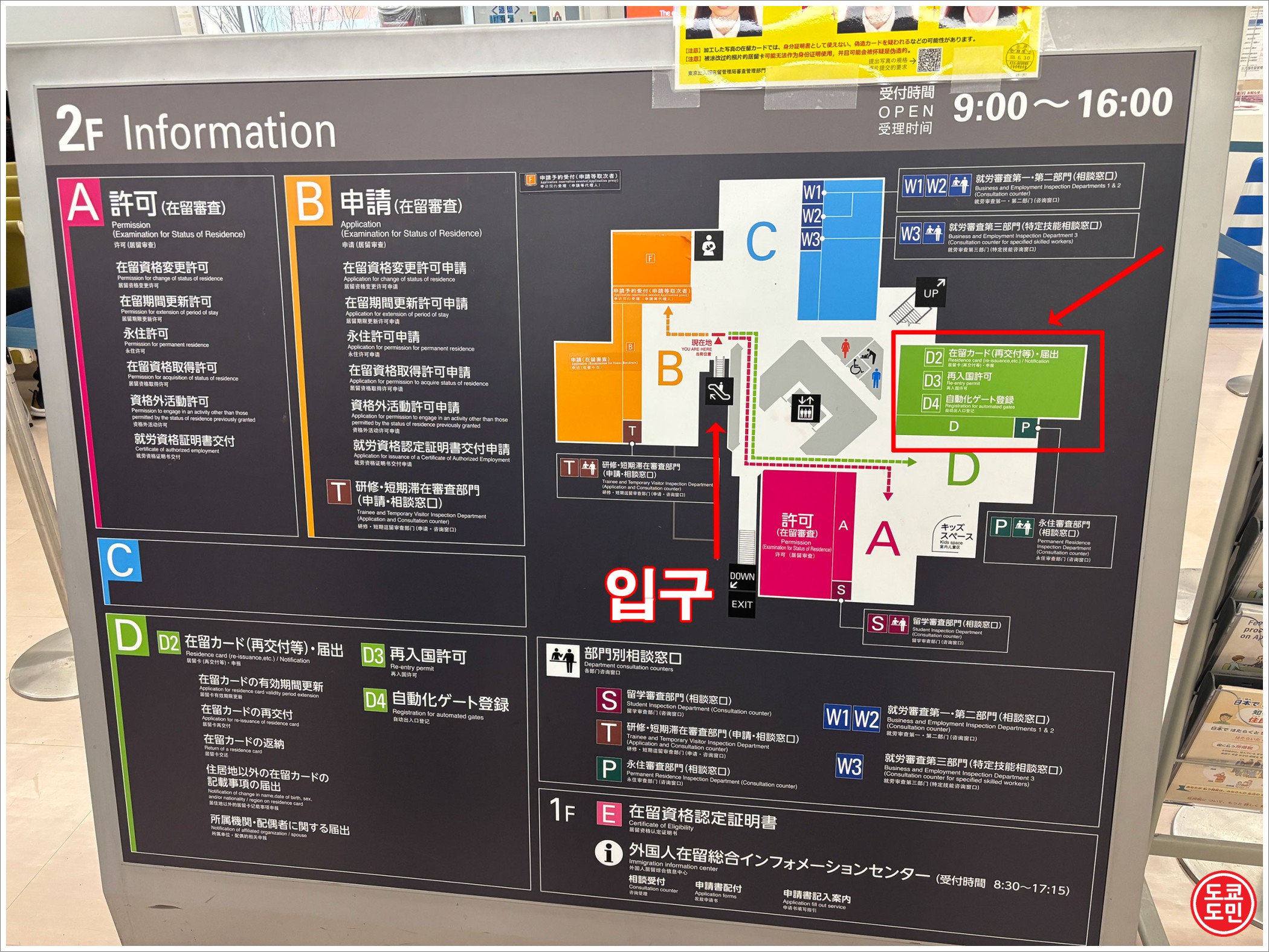 도쿄 출입국 재류 관리국의 입구로 들어오면 바로 2층에 올라가서 D2 창구로 이동합니다.