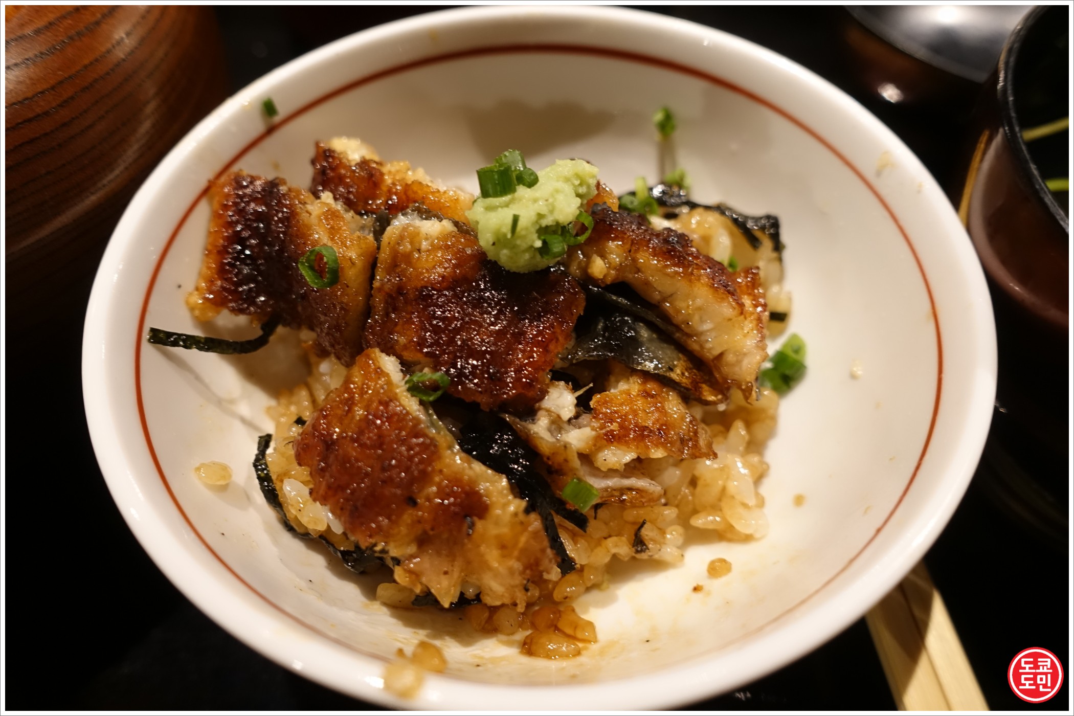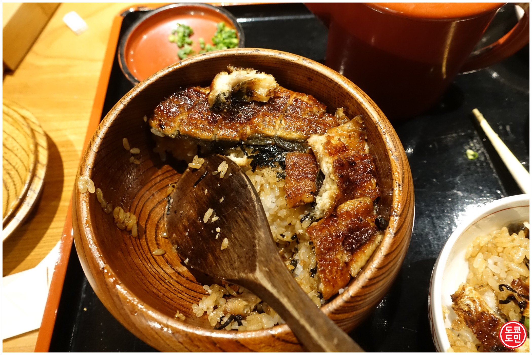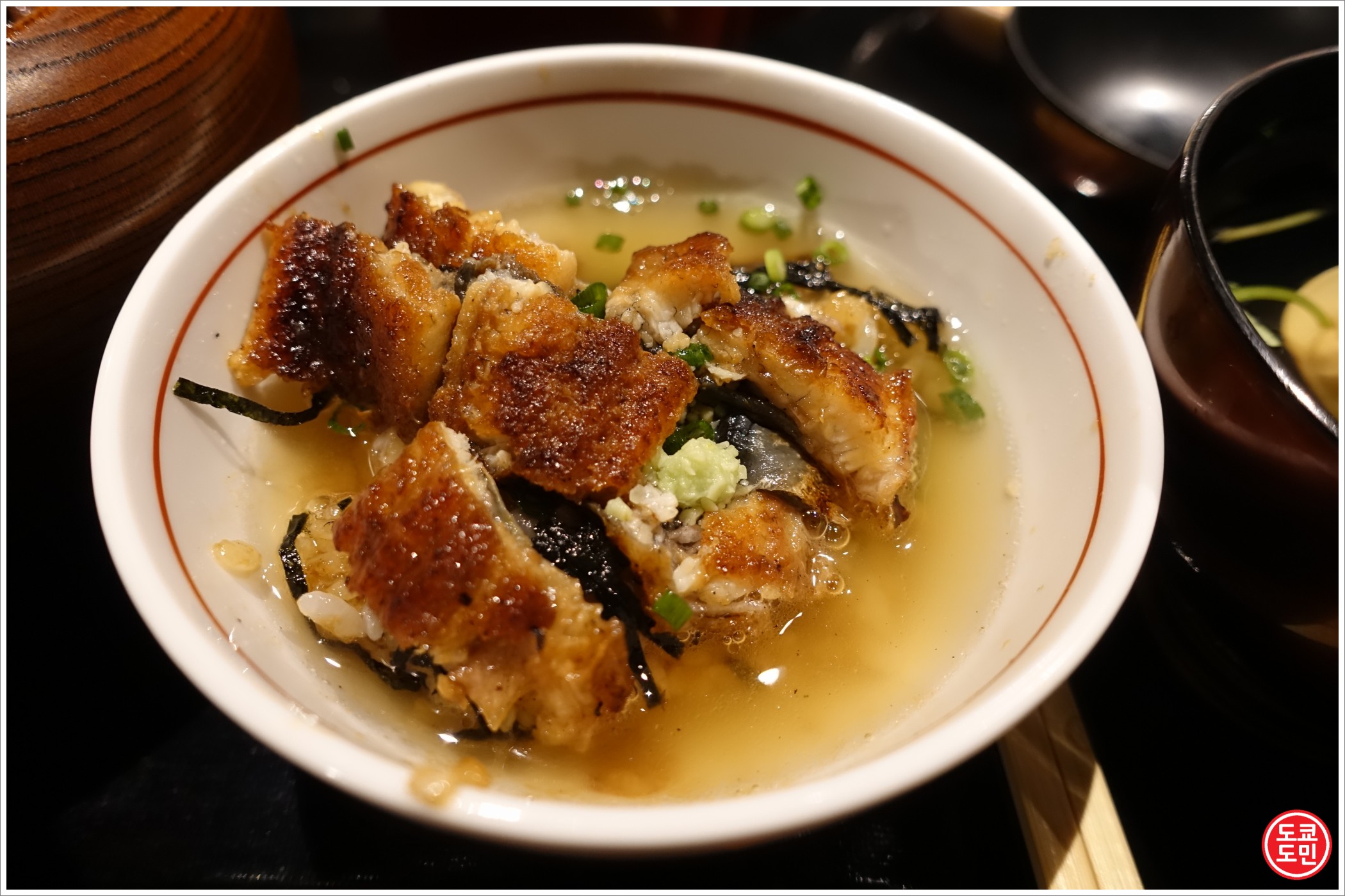 히츠마부시는 먼저 1/3을 그릇에 담고 그냥 먹고, 또 하나의 1/3을 그릇에 담고 파, 와사비등을 넣고 먹고, 나머지 1/3은 육수를 부워서 먹는답니다.