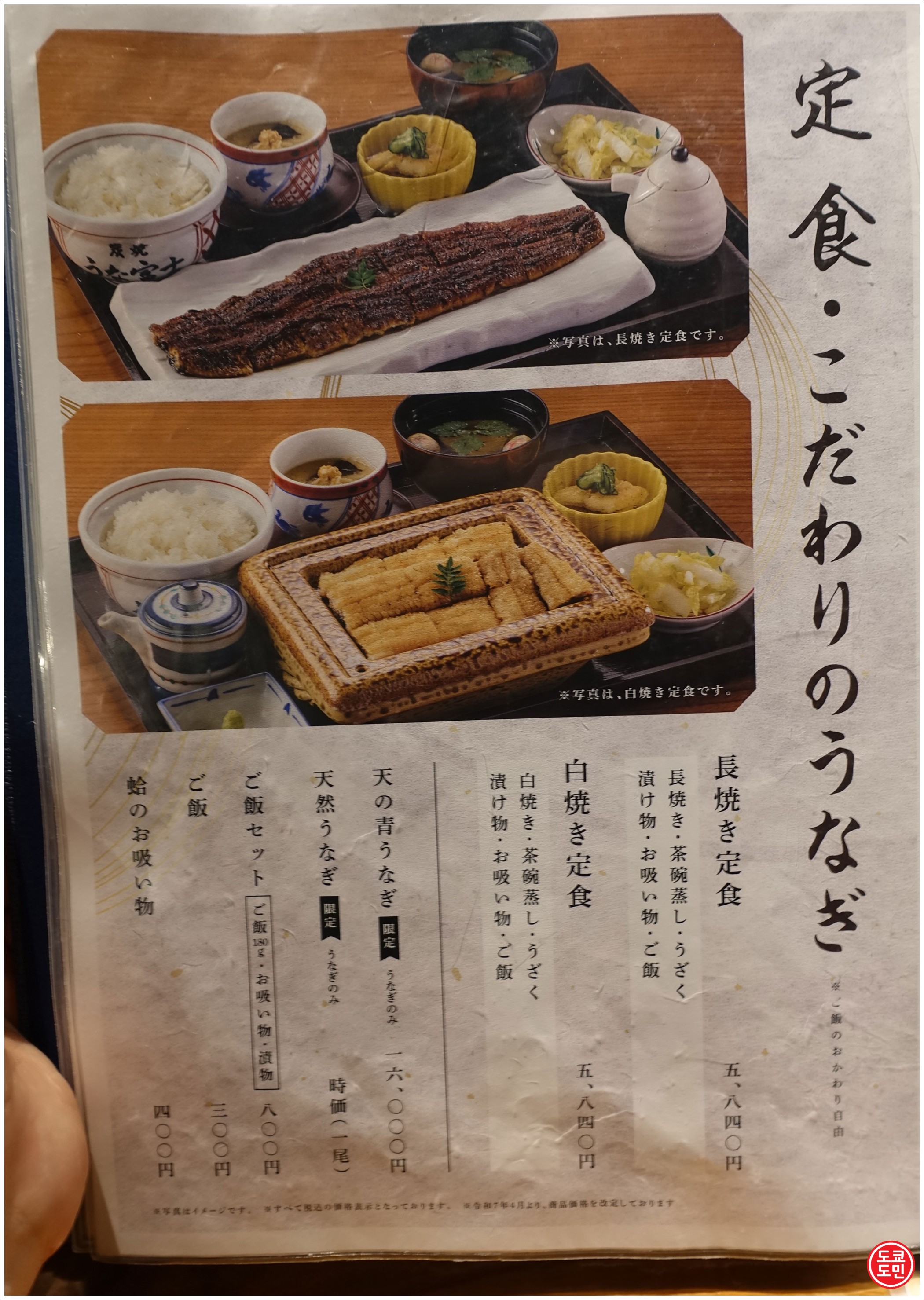 우나후지(うな富士)의 메뉴판을 보겠습니다.