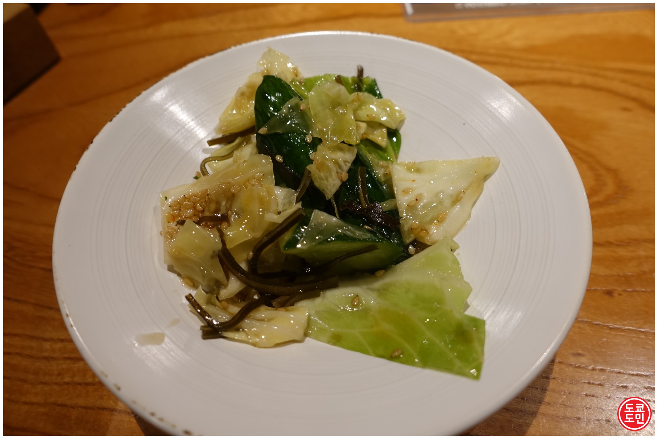 처음에 츠케모노라는 오이와 양배추를 절인 반찬이 나옵니다.