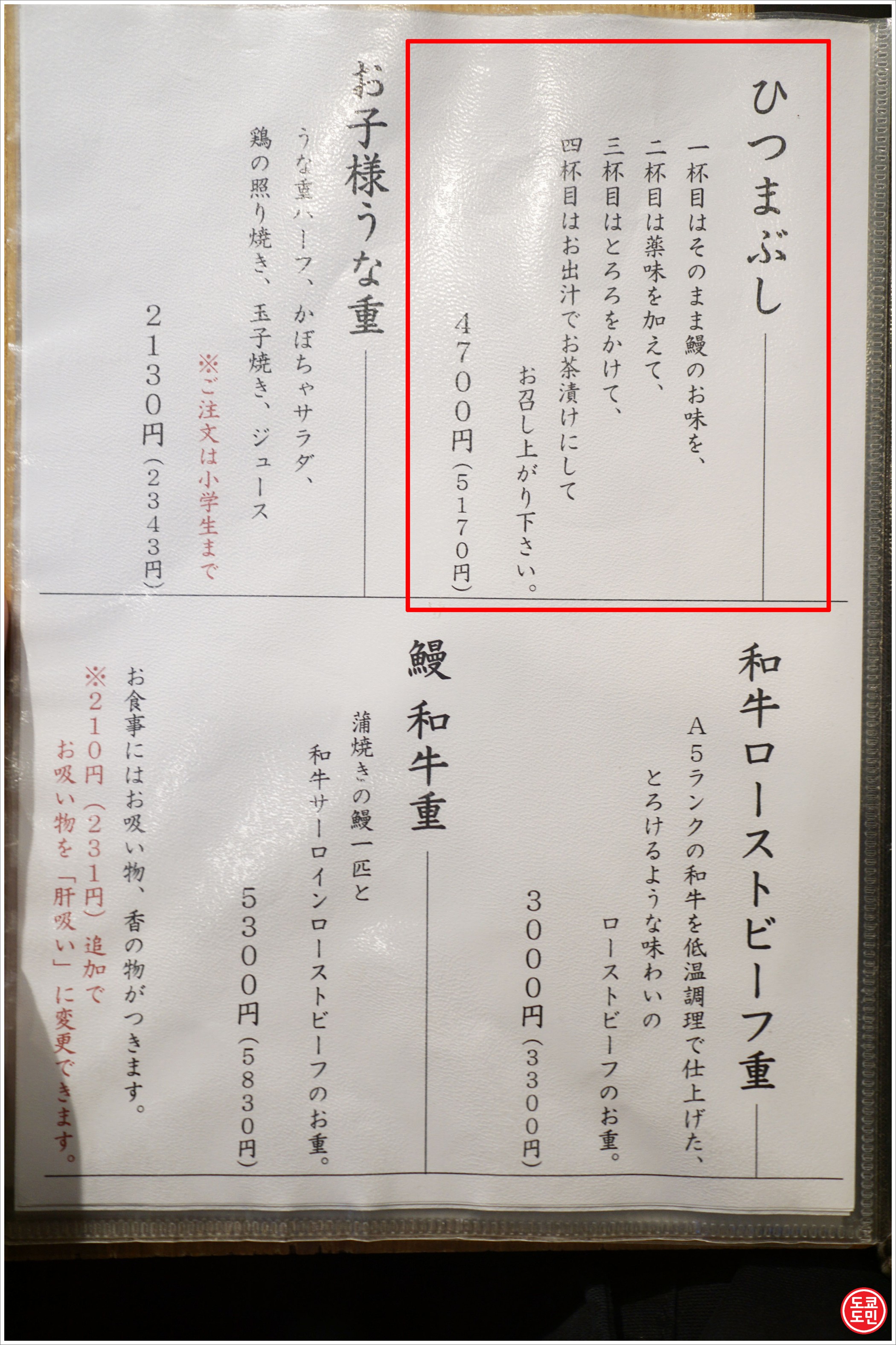 히츠마부시는 5170엔(약 5.1만원).
