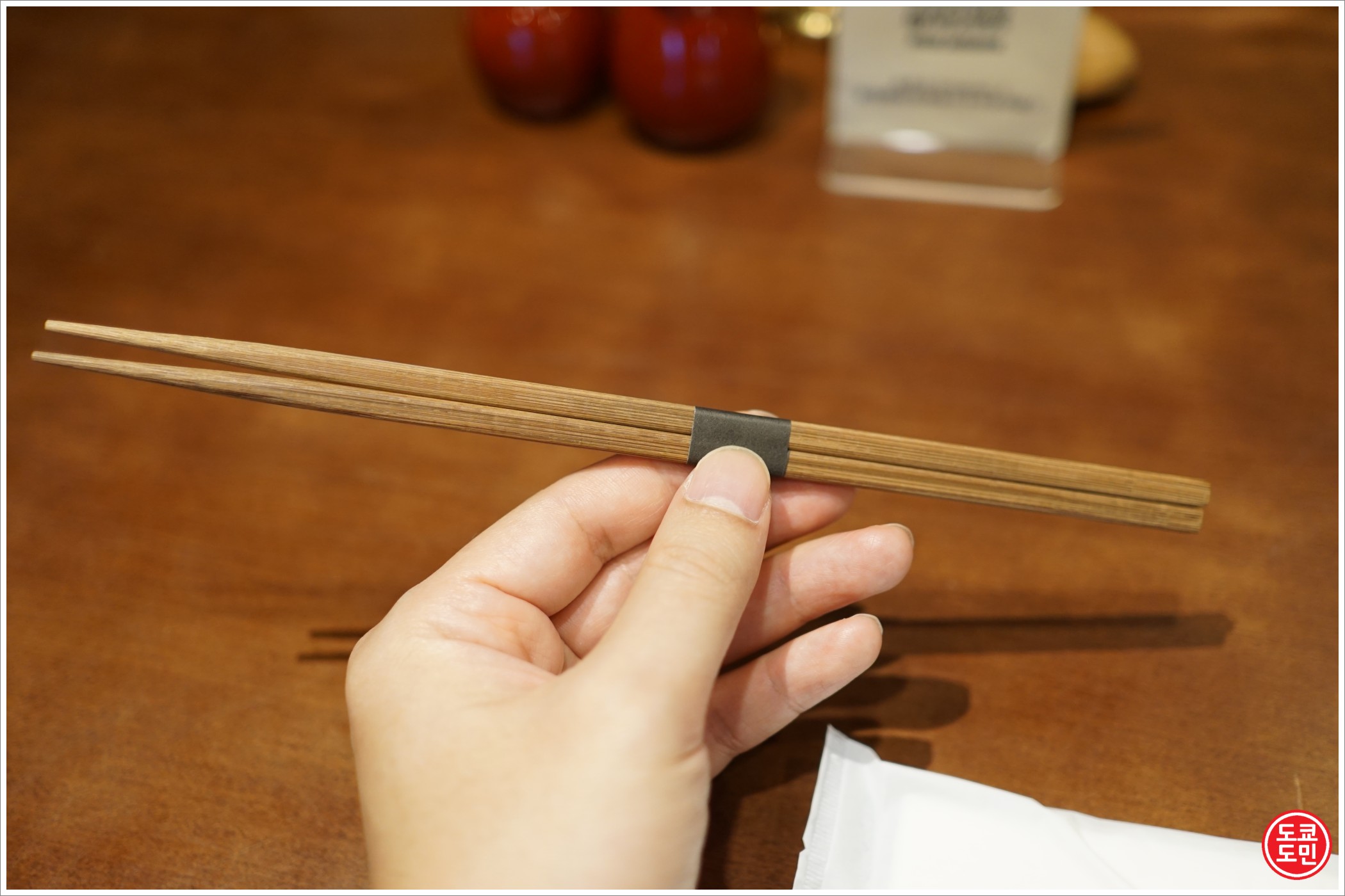 좌석에는 물티슈, 젓가락, 차가 있습니다.