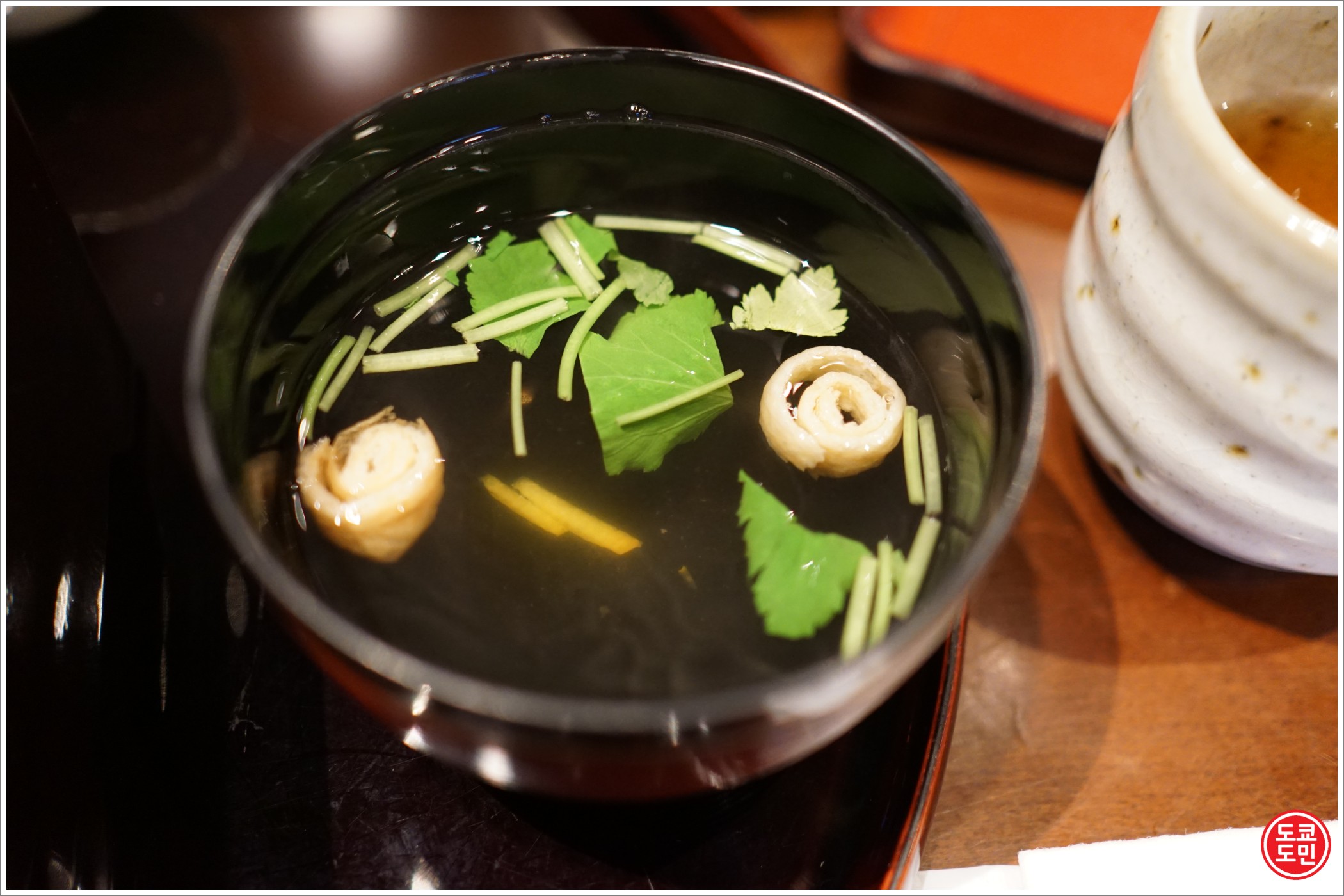 그 다음에는 파, 와사비를 넣고 육수가 들어있는 주전자가 같은 쟁반에 나옵니다.