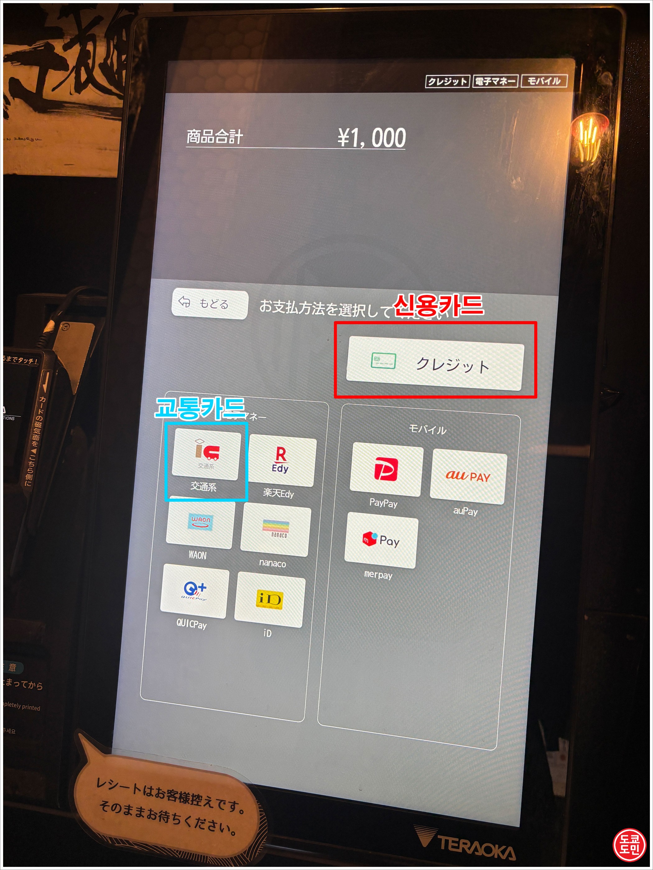 신용카드 결제도 가능하고, 스이카, 파스모등 일본의 교통카드로 결제도 가능합니다.