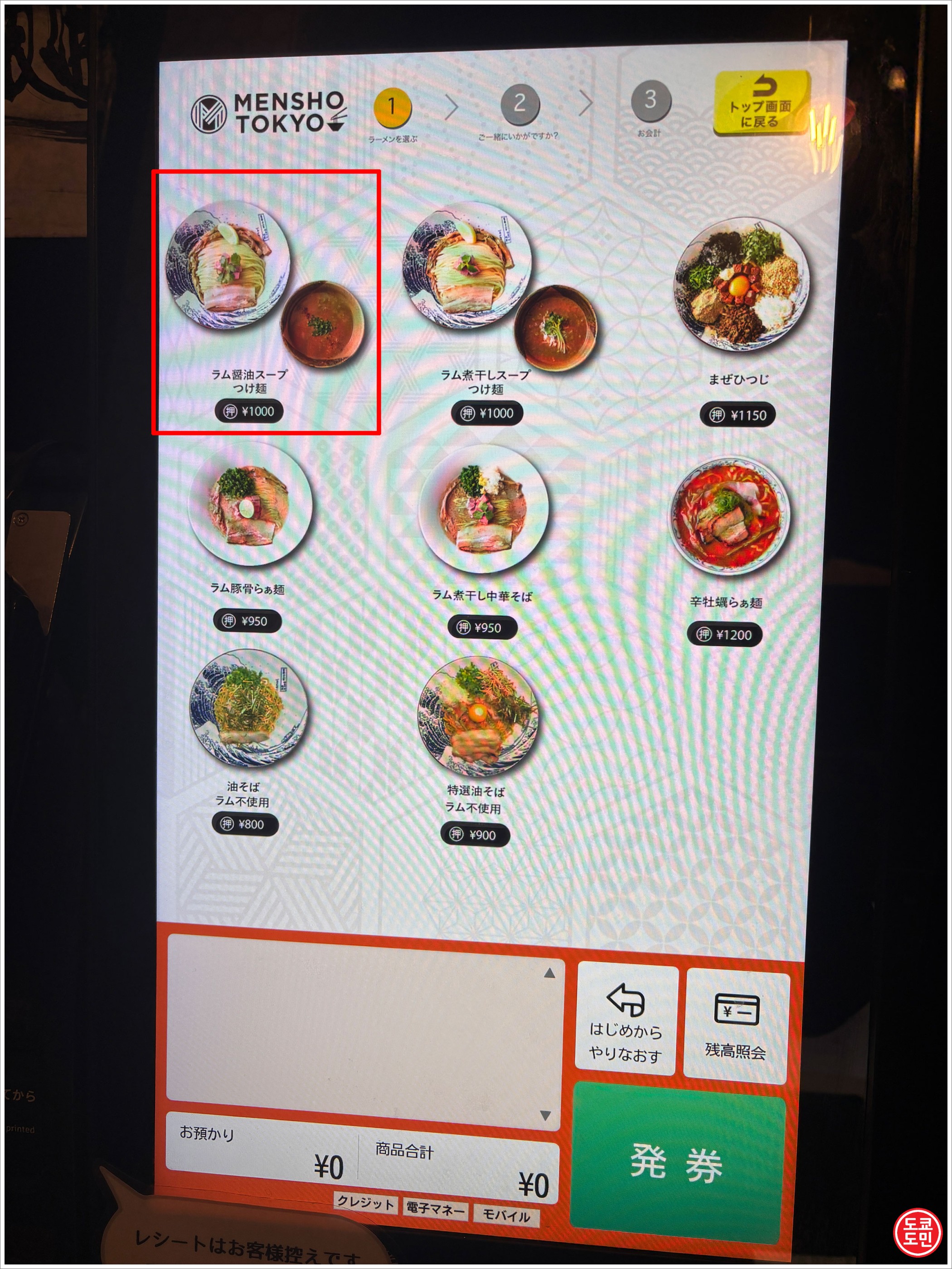 도쿄 도쿄돔 근처인 고라쿠엔역 근처에 있는 양고기 츠케멘으로 유명한 "멘쇼 도쿄(MENSHO TOKYO)".