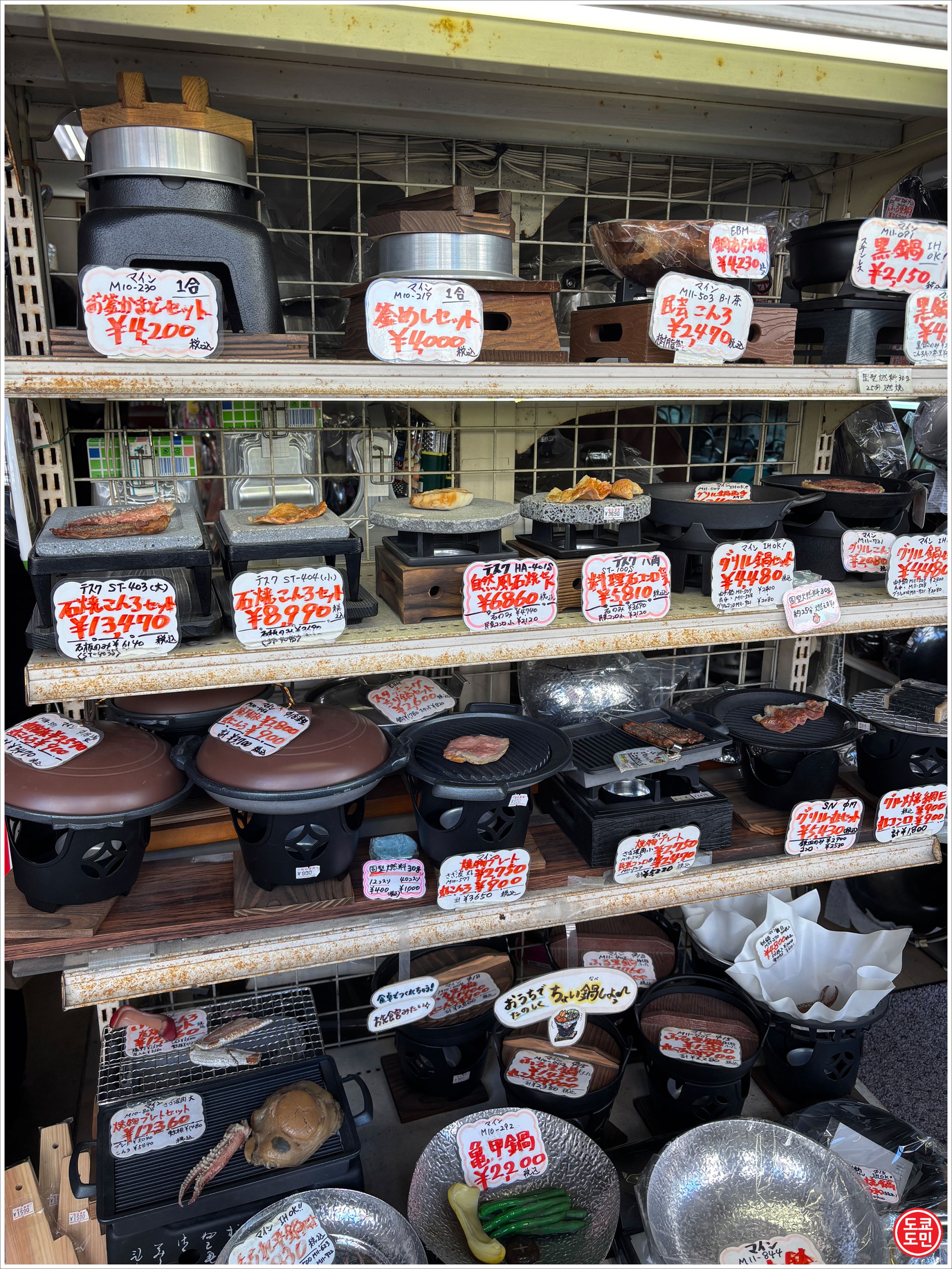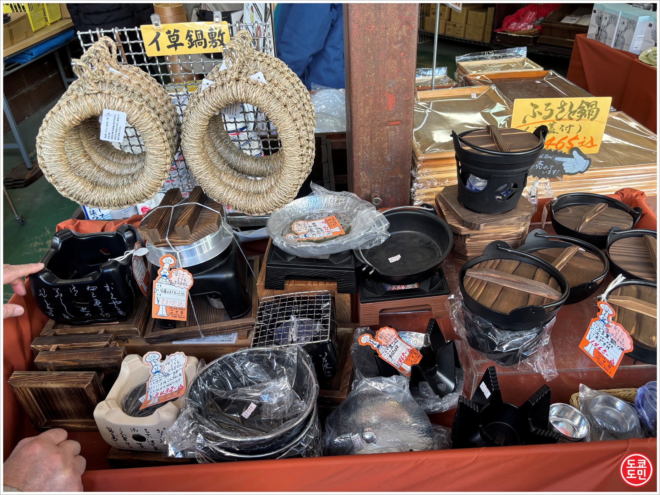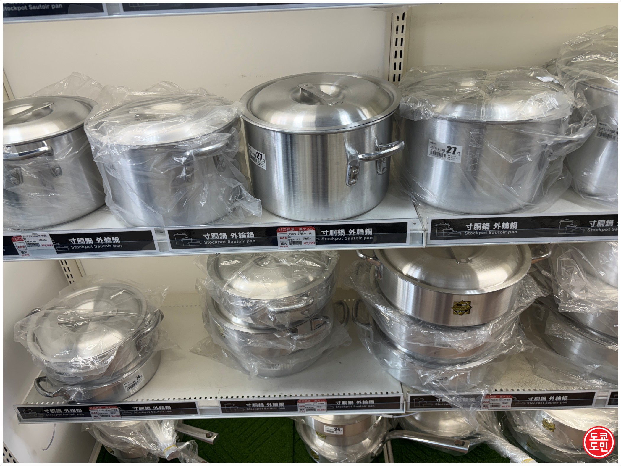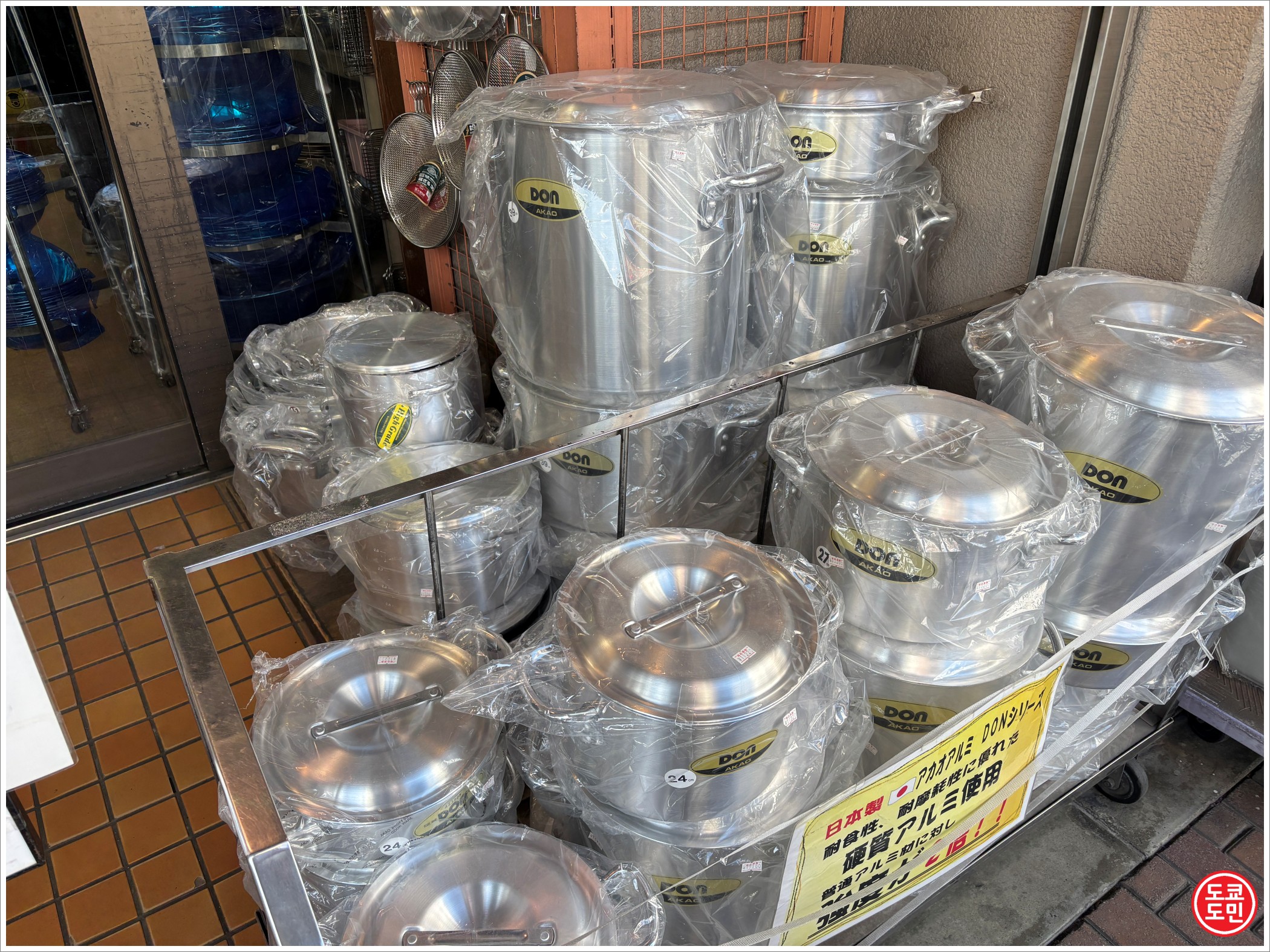 라멘가게나 음식점에서 사용할만한 큰 냄비들도 많이 있어요.
