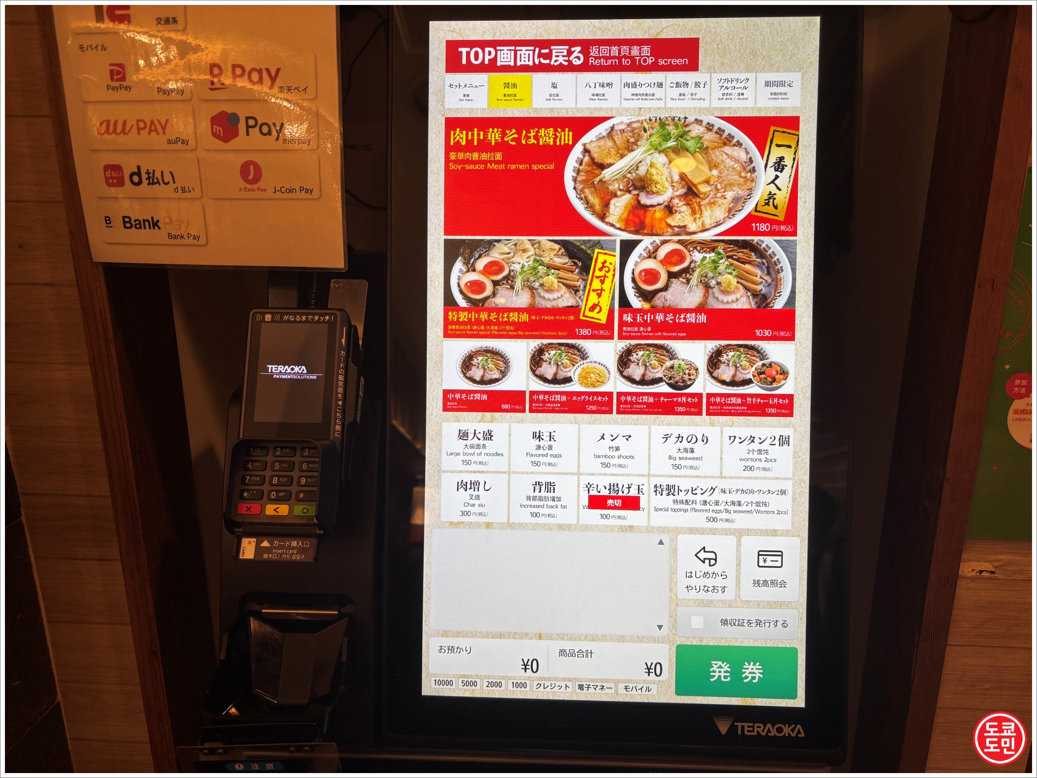 저는 가장 심플한 880엔짜리 라멘을 구입했습니다.