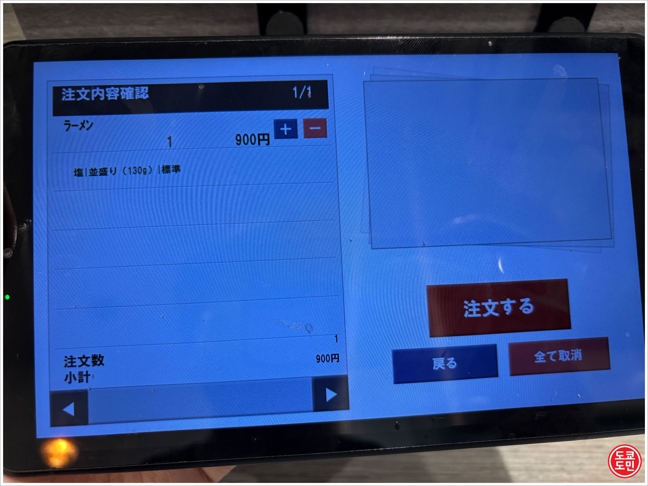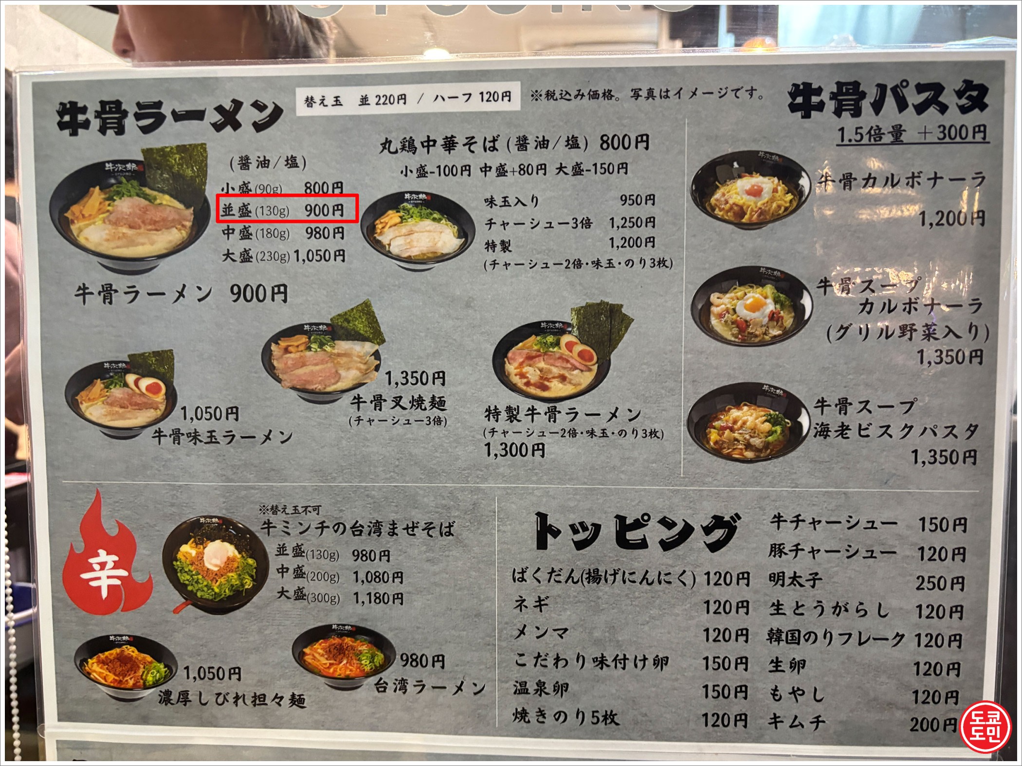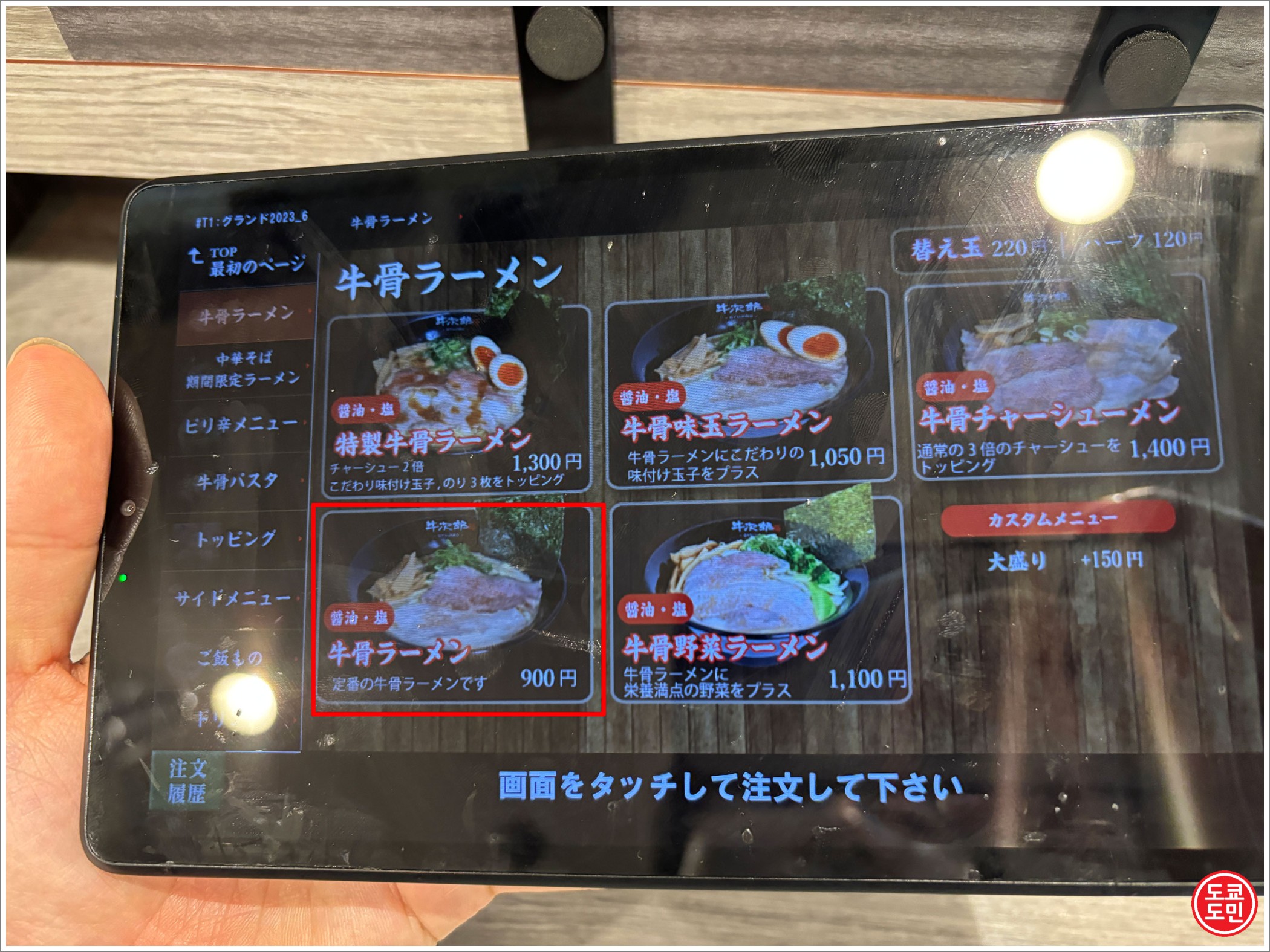 저는 가장 기본 메뉴인 규코츠 라멘 900엔짜리 라멘을 주문했습니다.