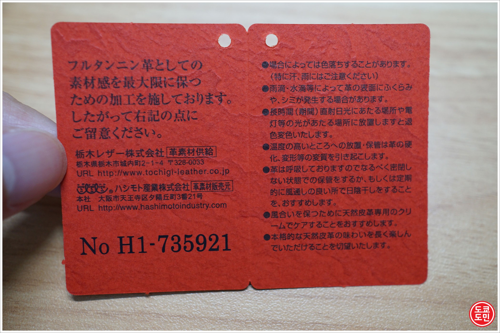 도치기 가죽 (황색) 이라고 적혀있네요.