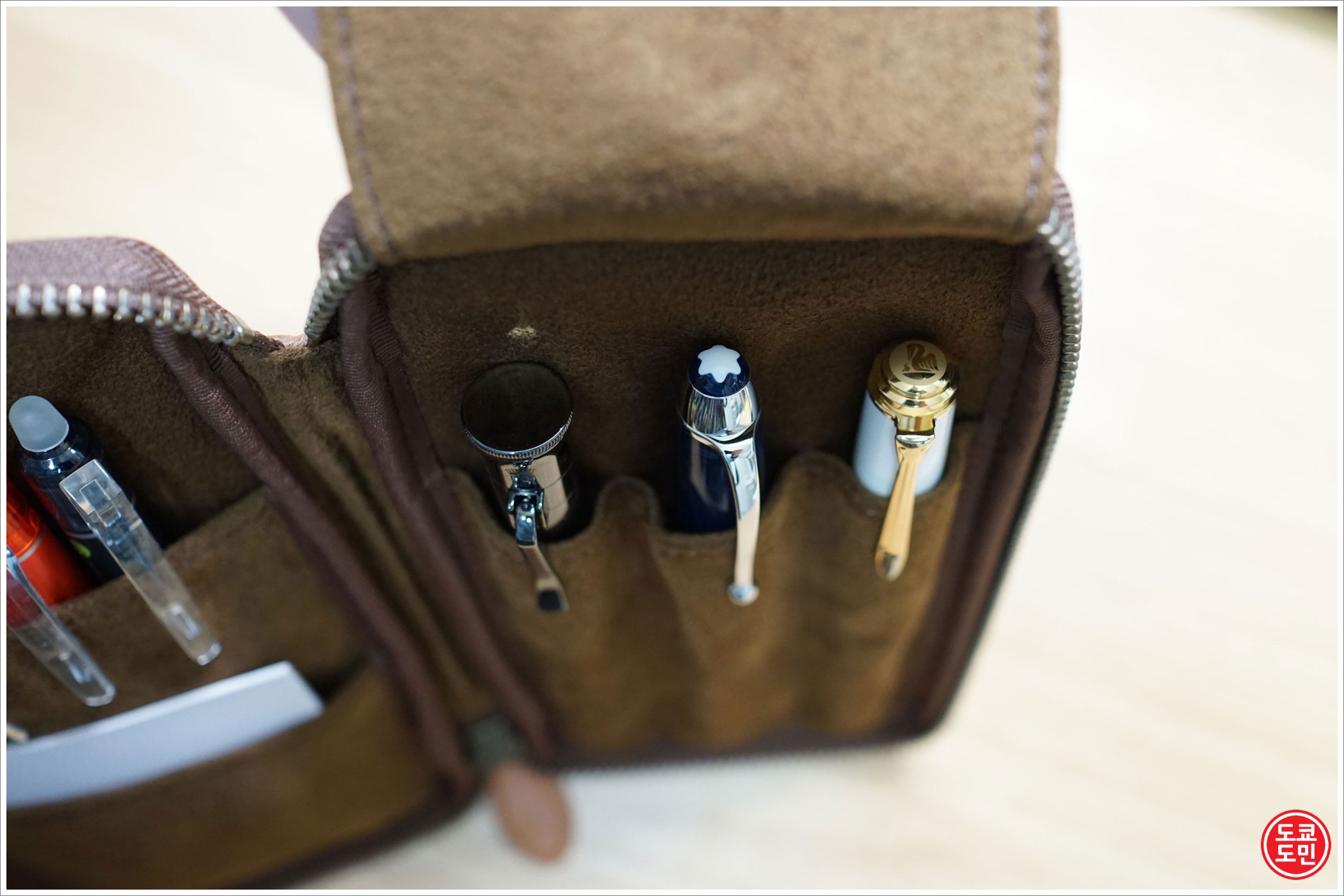 오른쪽에는 만년필을 넣을 수 있는 곳이 있습니다.